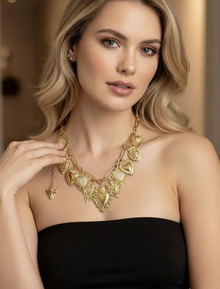 13 Cuori sacri di varie dimensioni e forme goldplated 18 kt