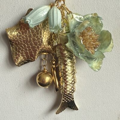 3 elementi in argento 925 dorato e sfere pietre naturali