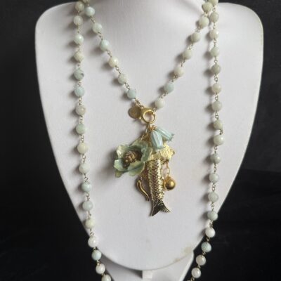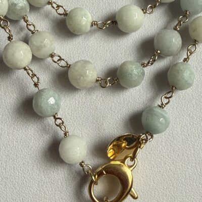 Collana lunga lavorata a mano con sfere mm 8 di acquamarina naturale