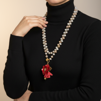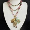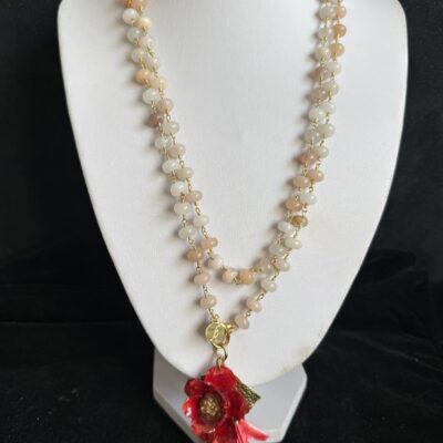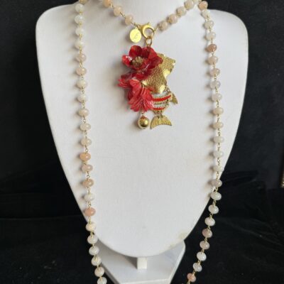 Collana lunga lavorata a mano con argento dorato e sfere mm 8 di pietra di luna chiara