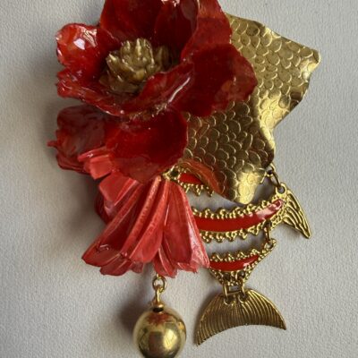 1 pesce in ottone dorato e smalto snodabile cm 5