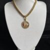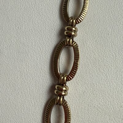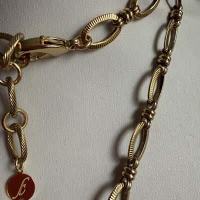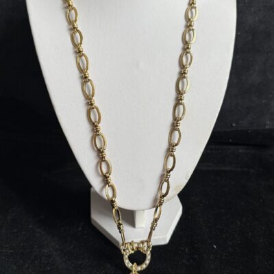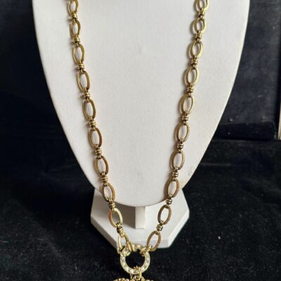 Collana lunga lavorata a mano con maglia grande in bronzo dorato martellato cm 2
