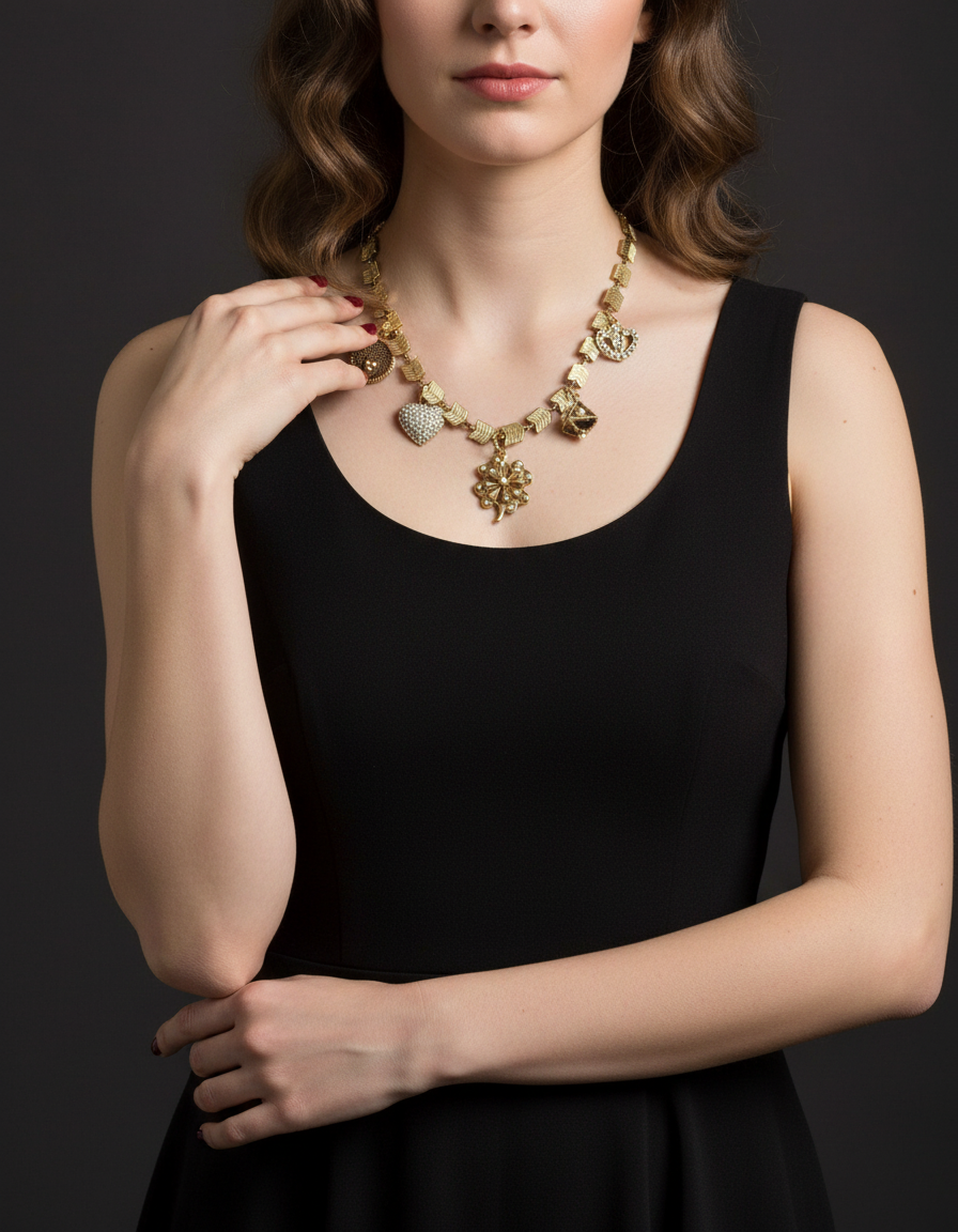 Collana girocollo in ottone dorato con pendenti