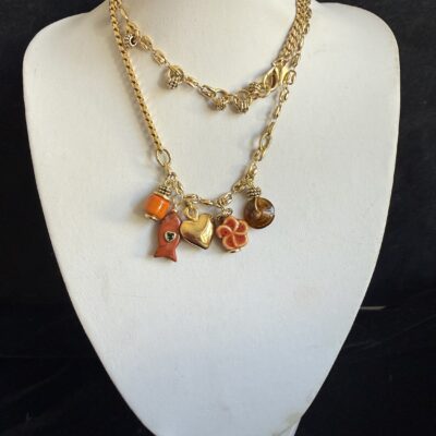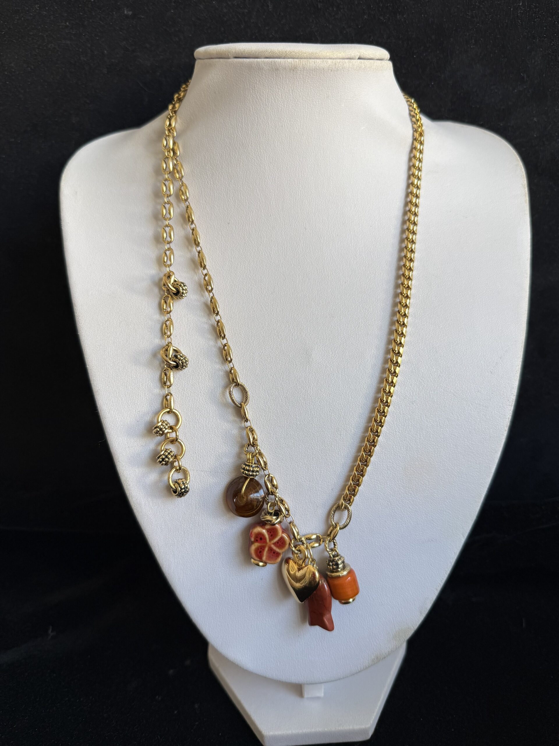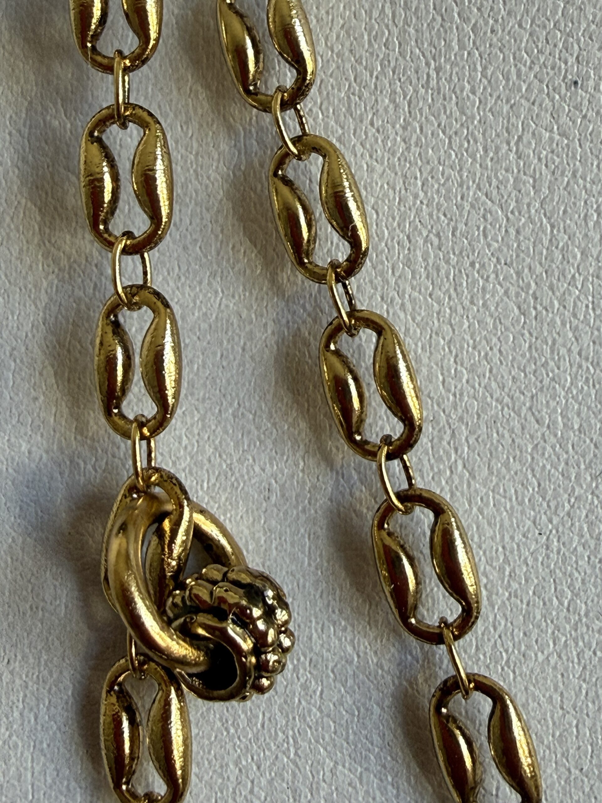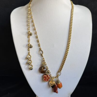 Collana lunga lavorata a mano con catene di due tipi differenti in bronzo dorato (vedi foto)