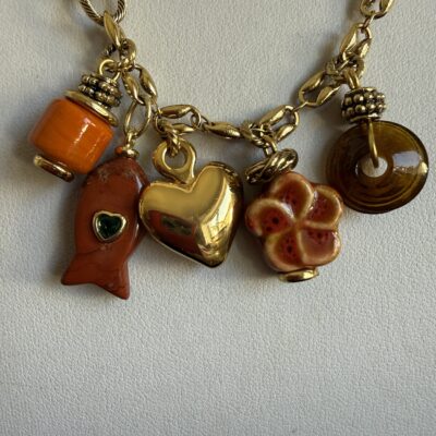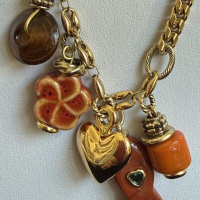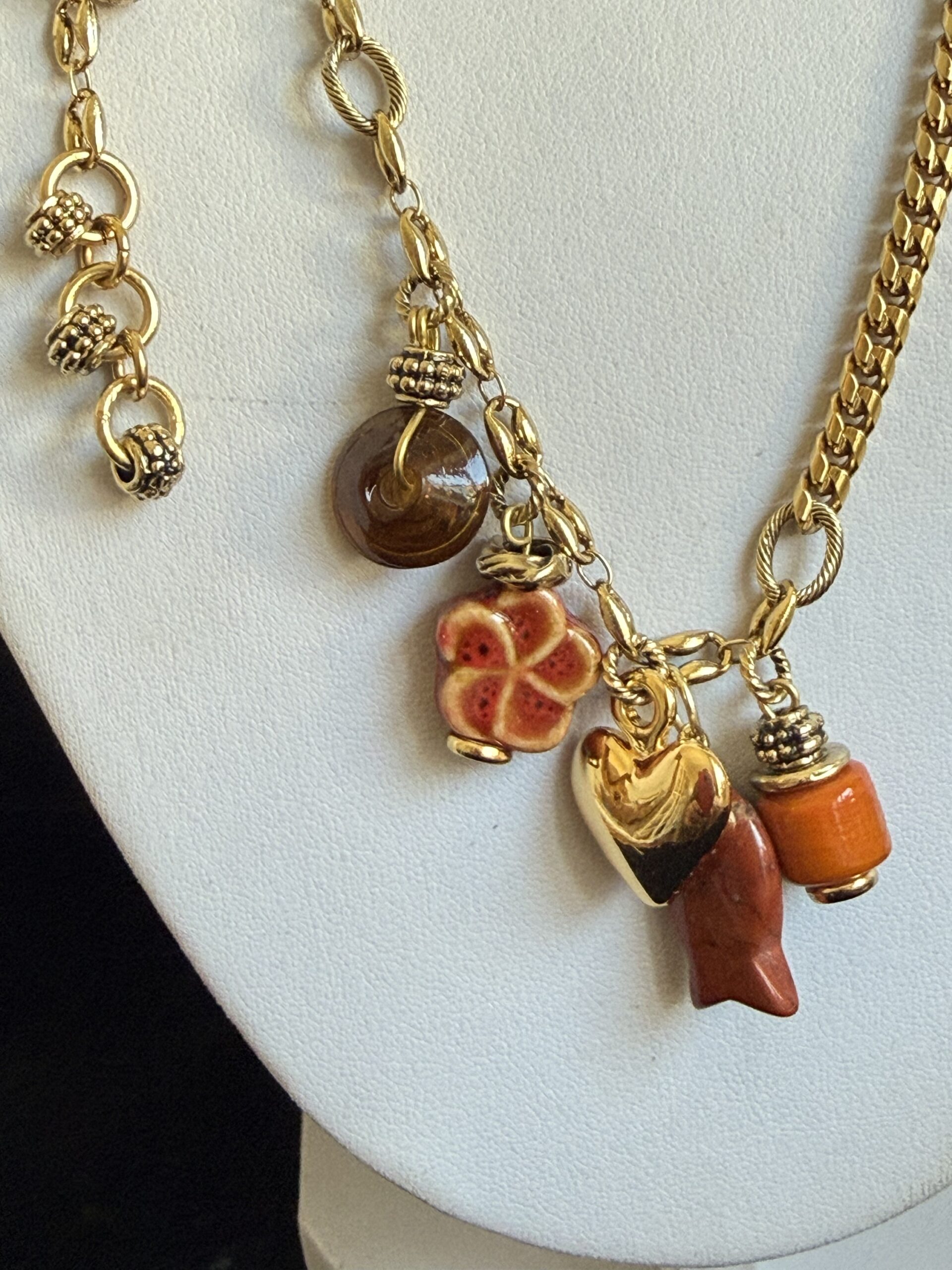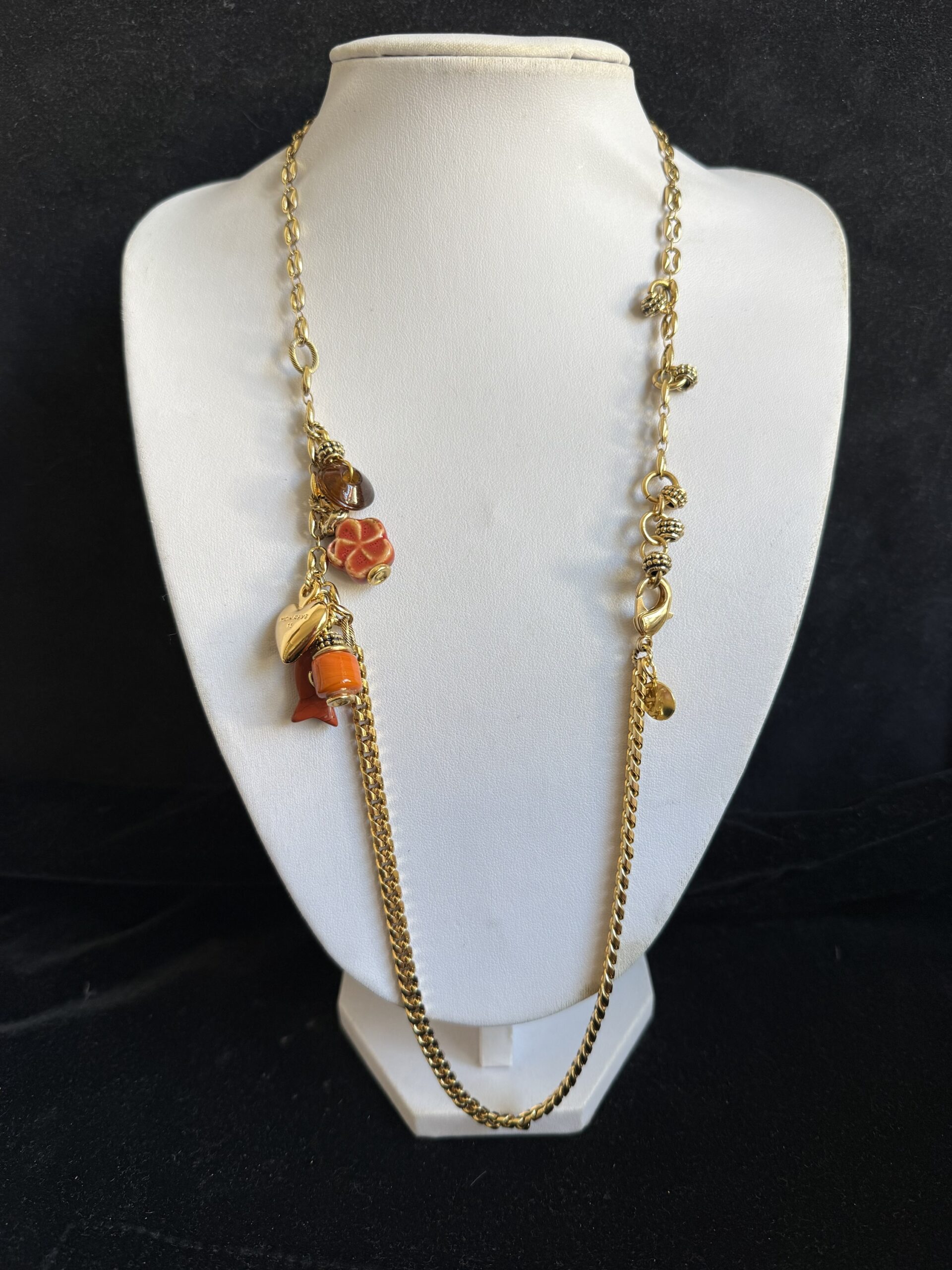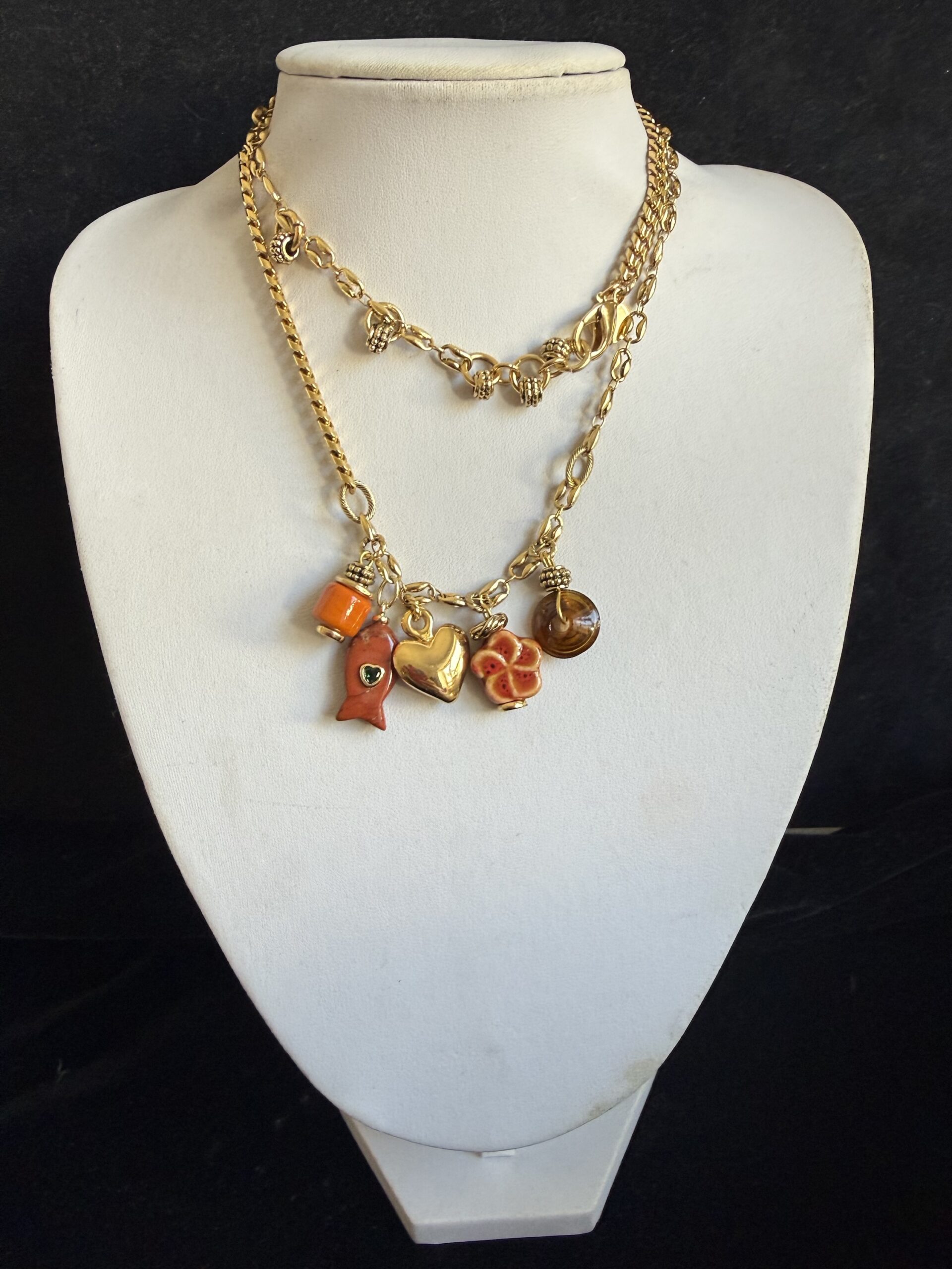 Collana lunga lavorata a mano con catene di due tipi differenti in bronzo dorato (vedi foto)