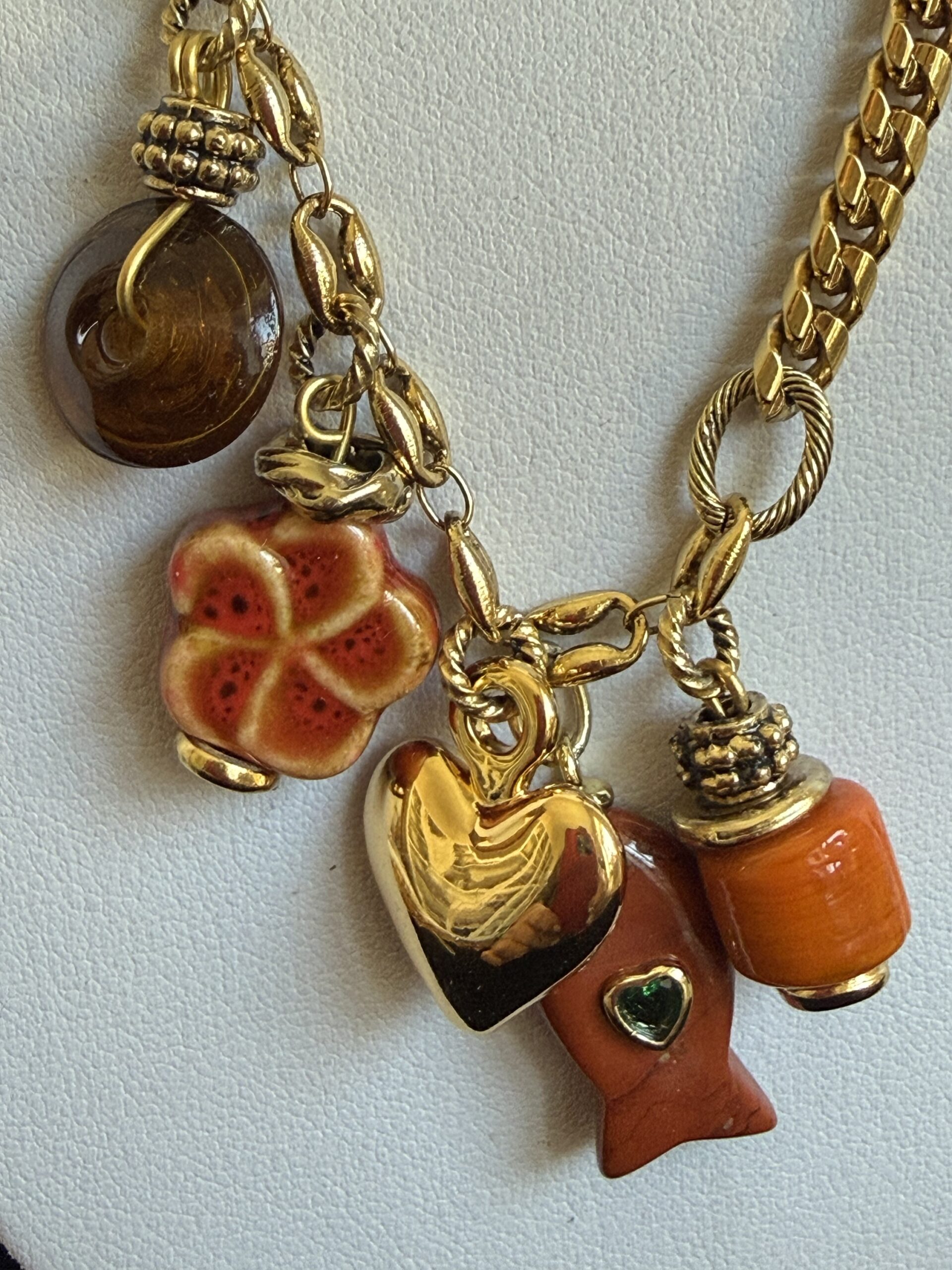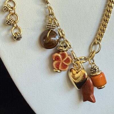 Finali di pietre con pietre dure color arancio e pesce color mattone con zircone in pietre dure