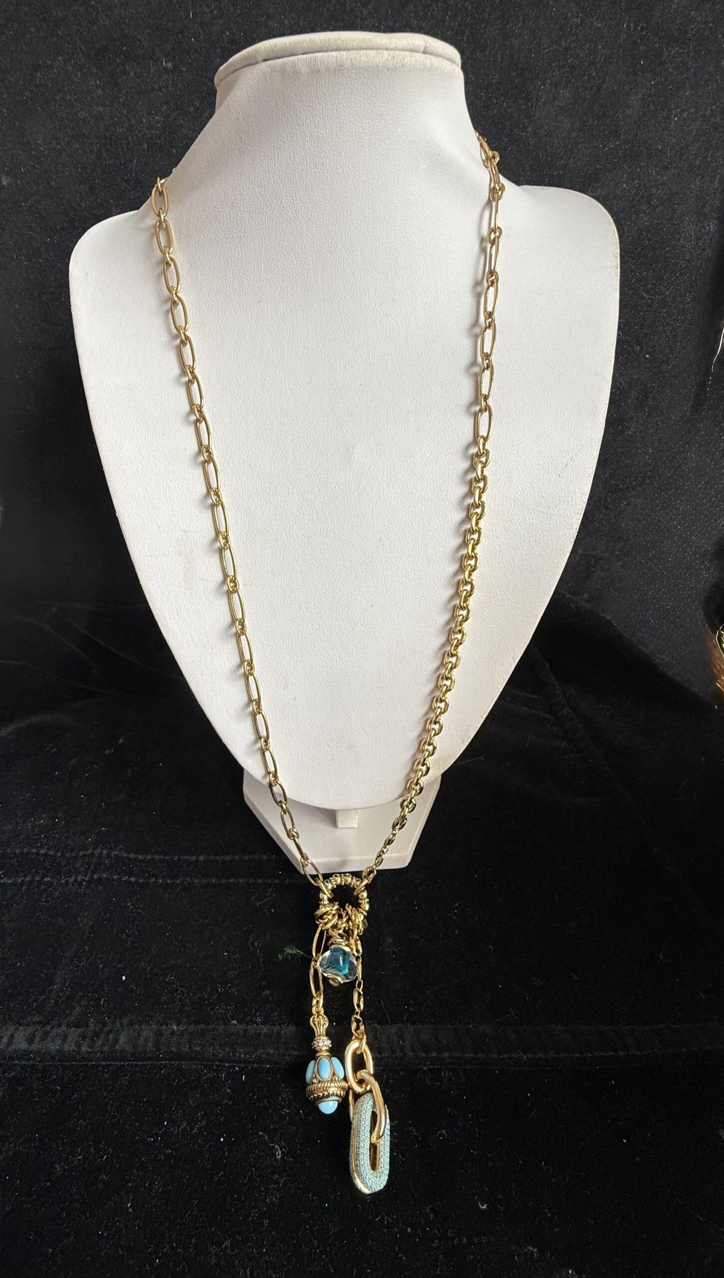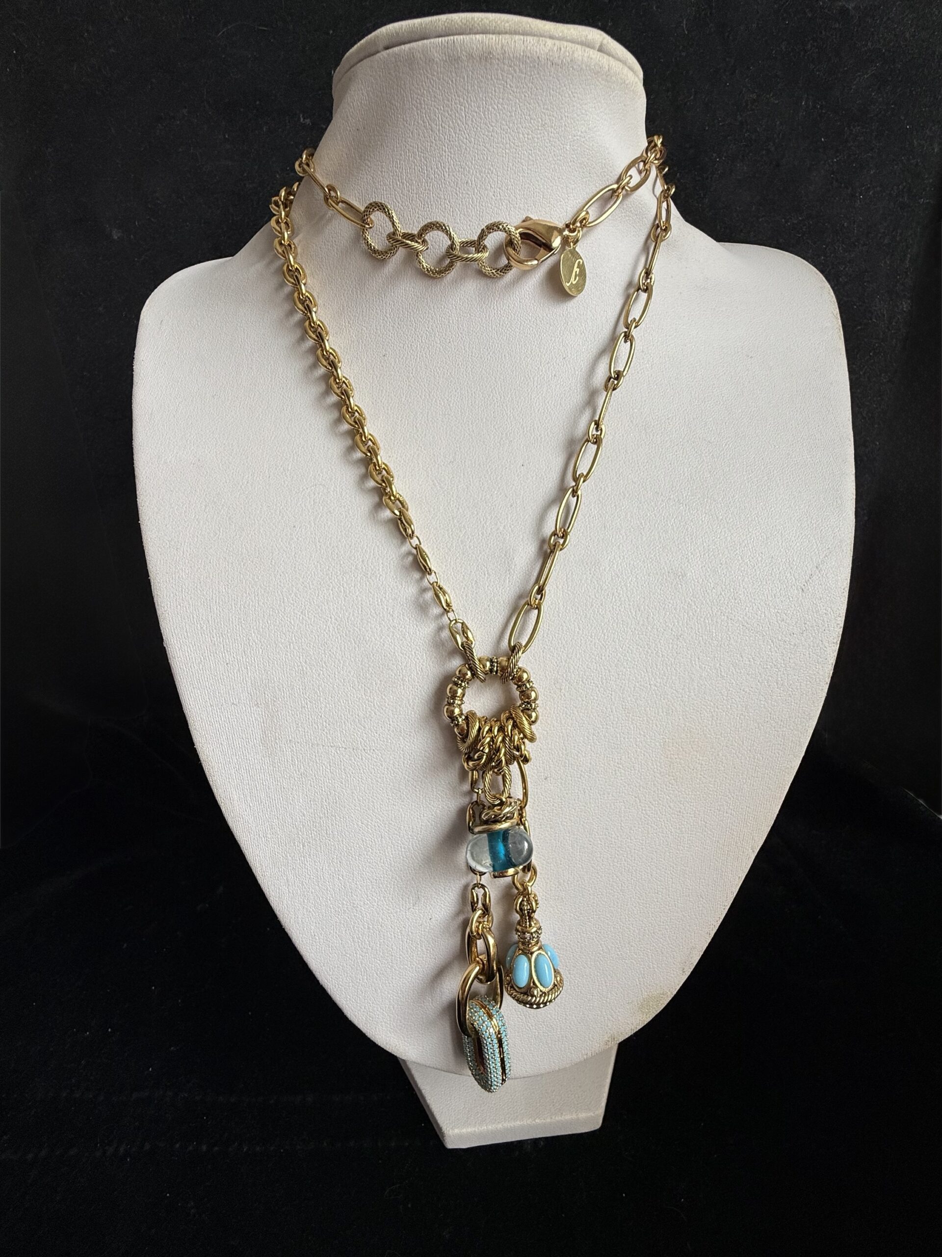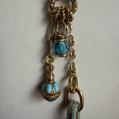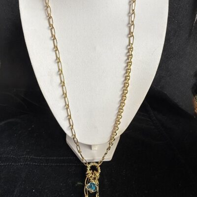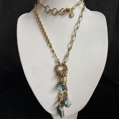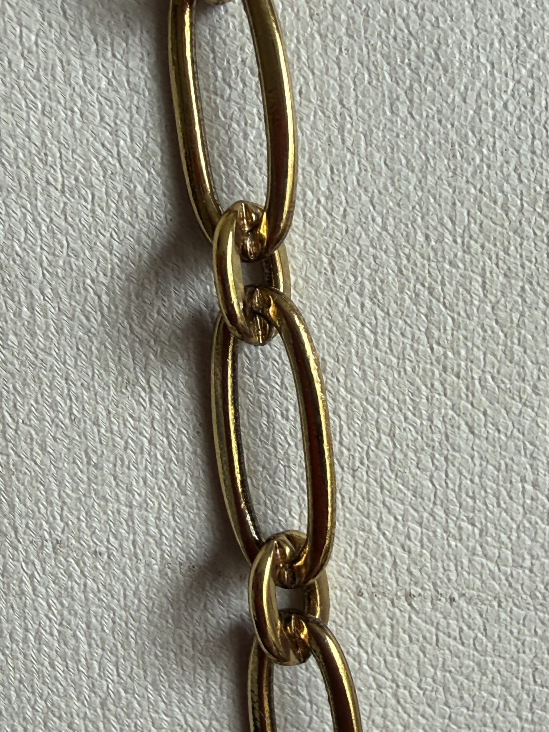 Collana lunga in bronzo dorato lavorata a mano con catene in bronzo di due tipi (vedi foto)
