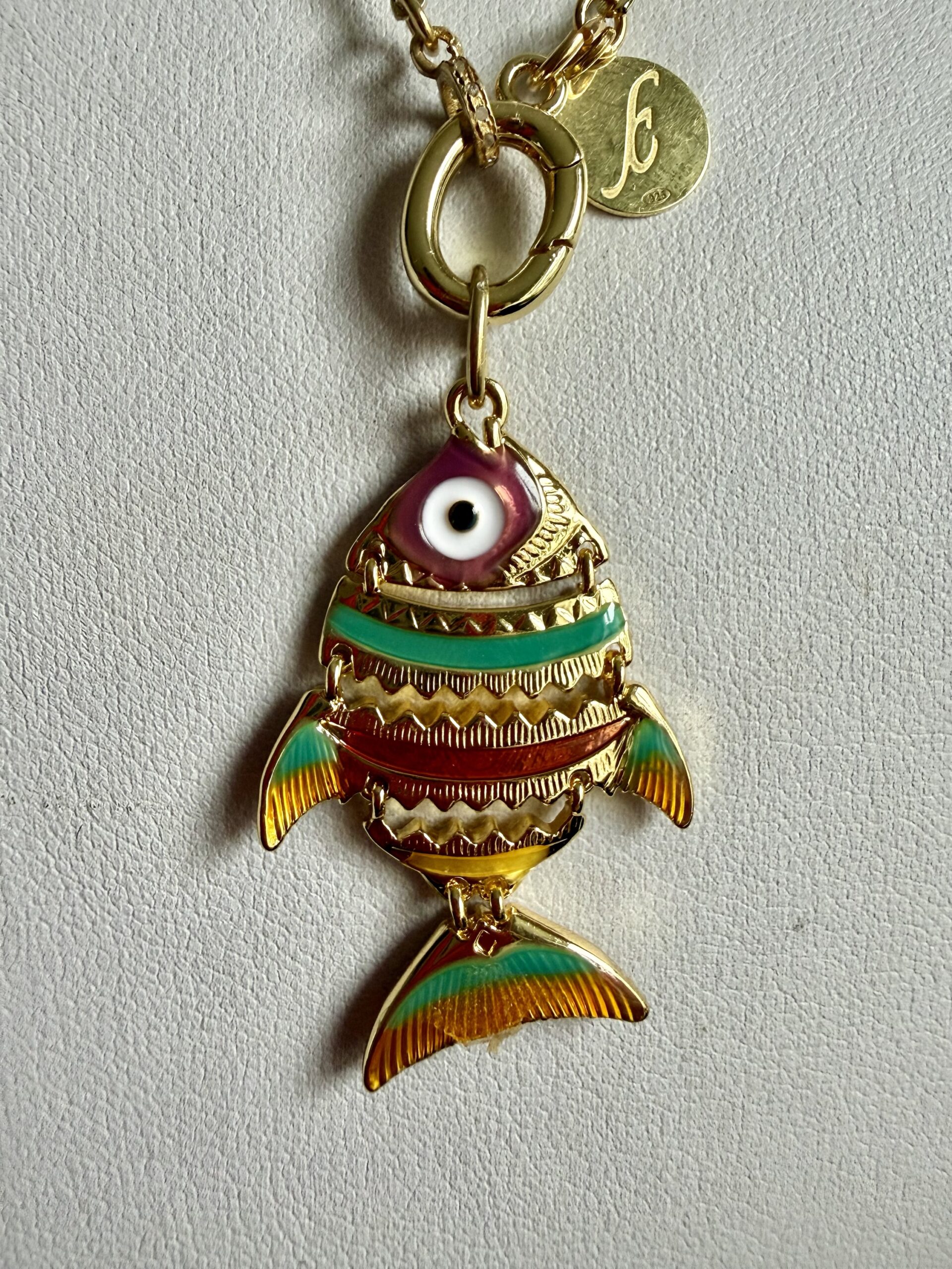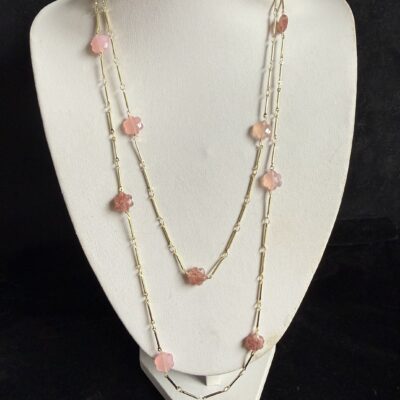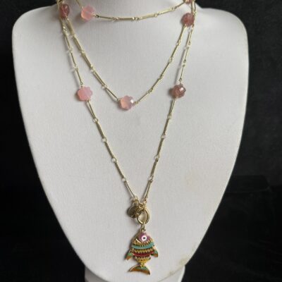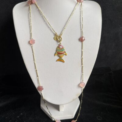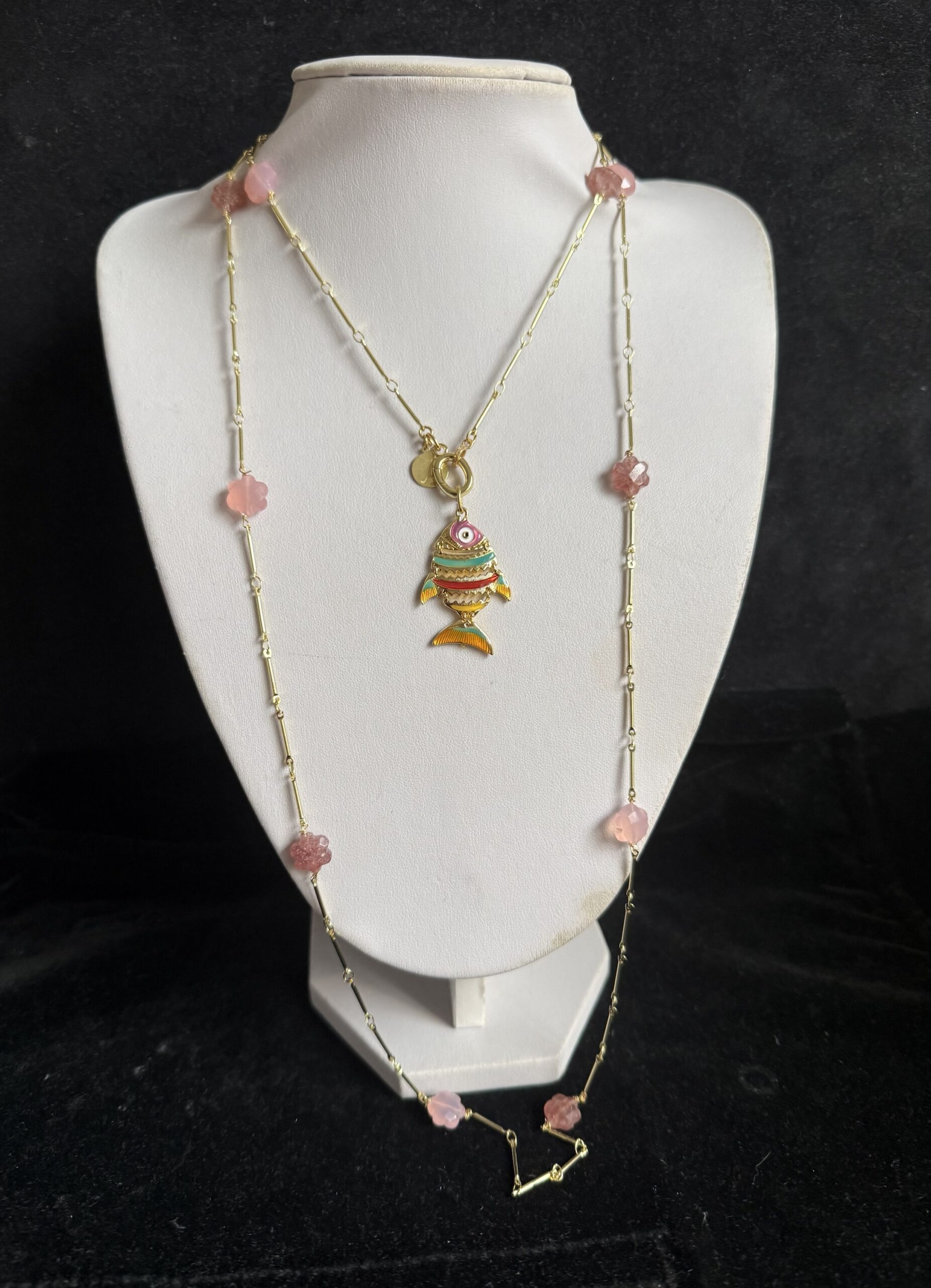 Collana lunga lavorata a mano con argento 925 dorato e catena placcata oro 18kt
