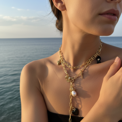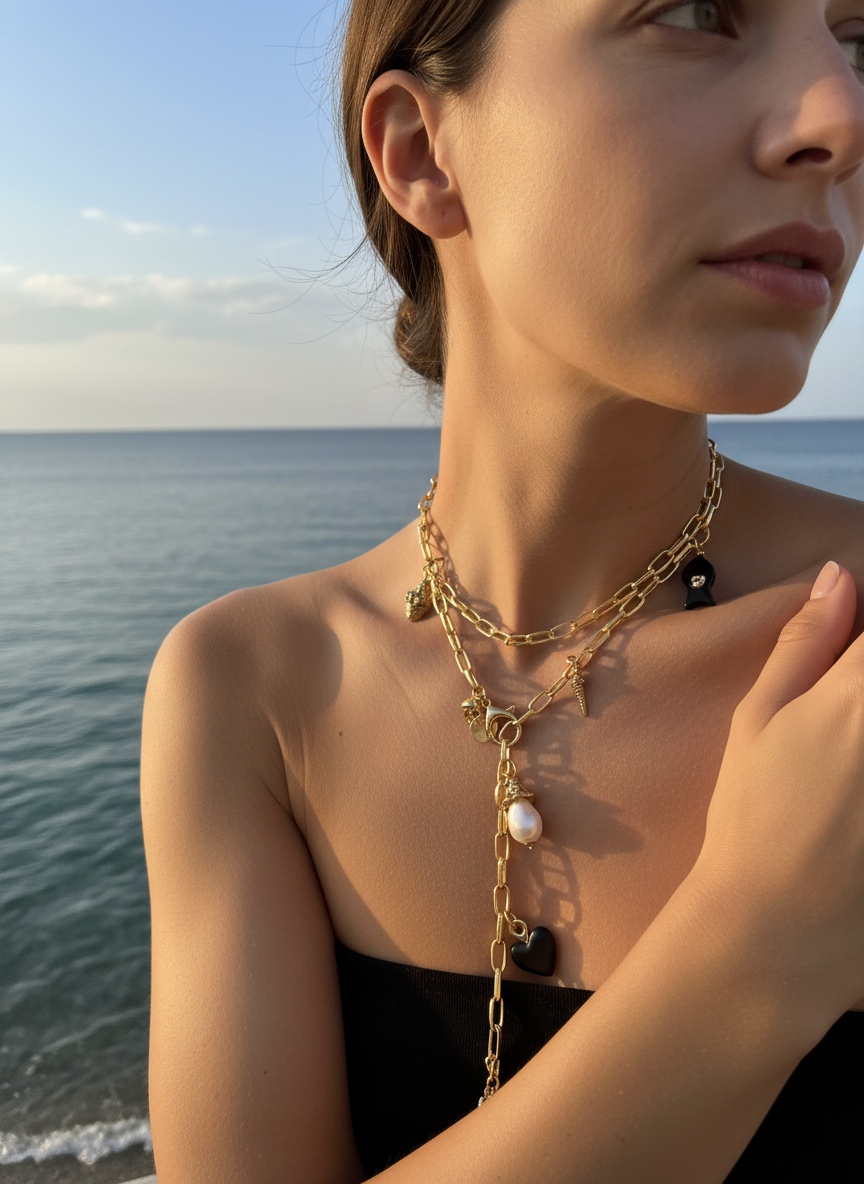 Collana lavorata a mano con catena a maglie dorata 18 kt