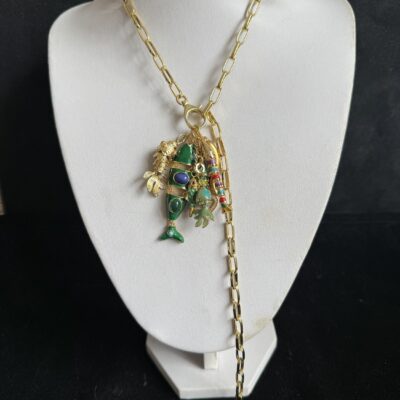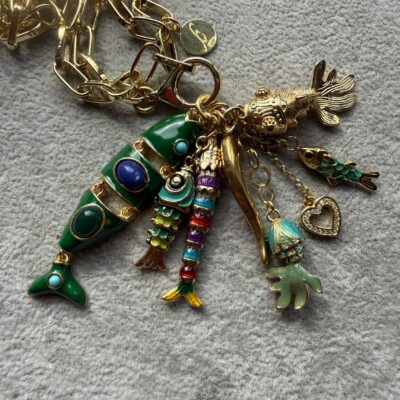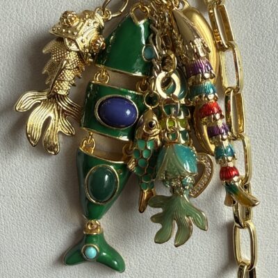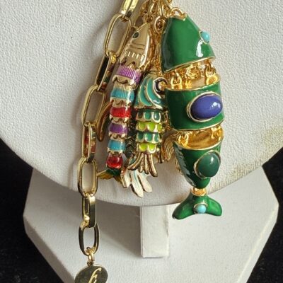 5 pesci snodabili smaltati in ottone dorato