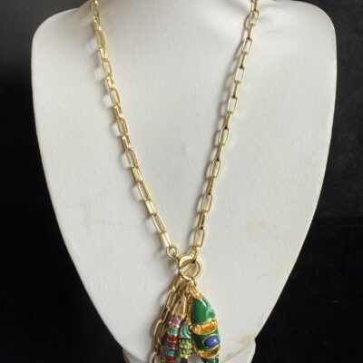 5 pesci snodabili smaltati in ottone dorato