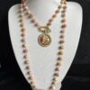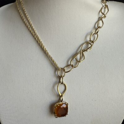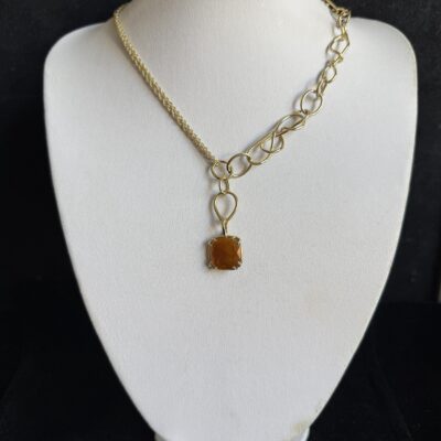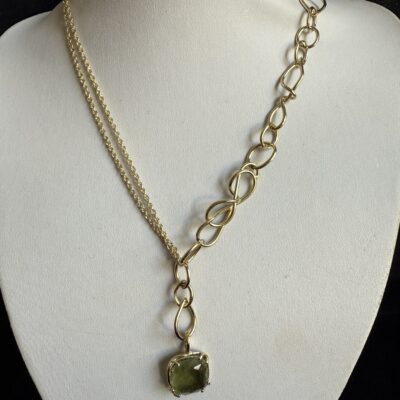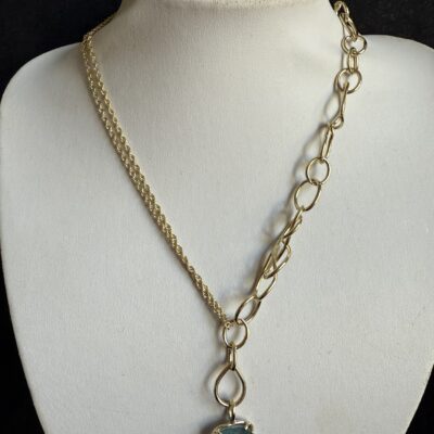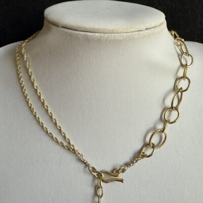 Collana girocollo con doppia catena tourchon in argento 925 dorato con catena argento 925 dorato fantasia a cerchi e ovali lavorata a mano