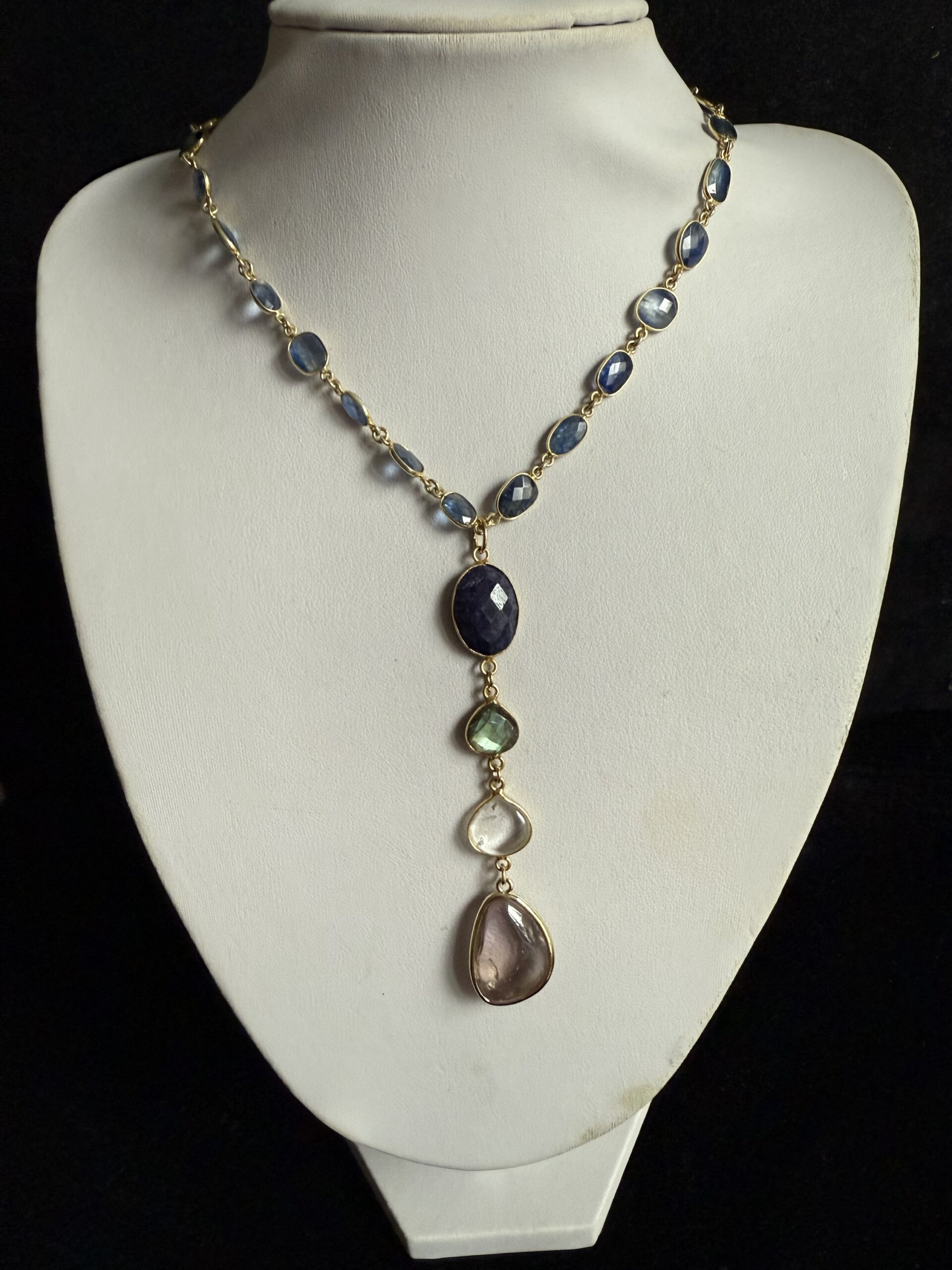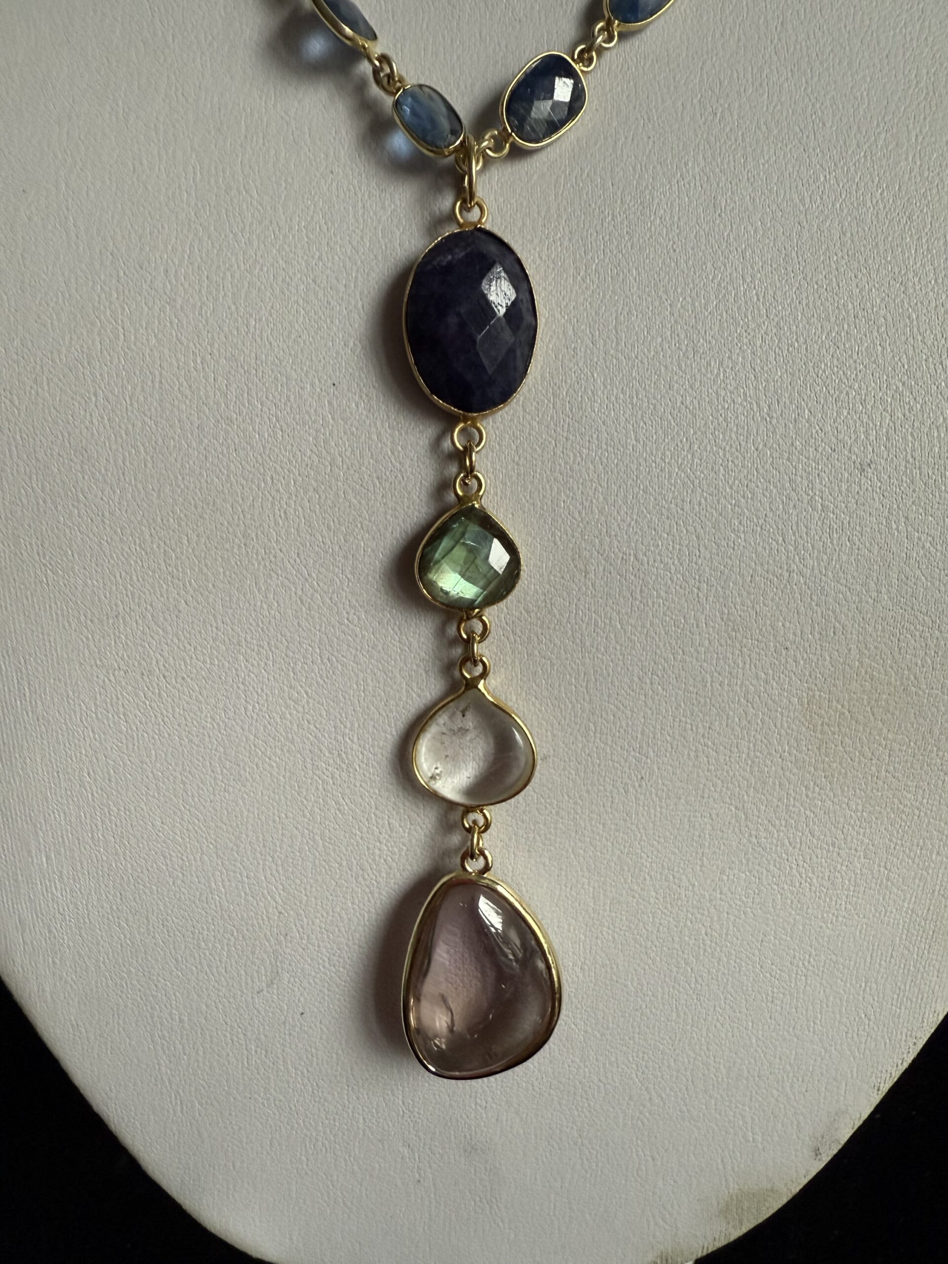 Pendente con pietre naturali cabouchon: lapis, labradorite, cristallo di rocca e ametista finale