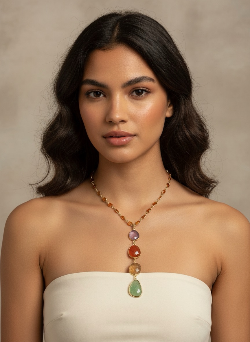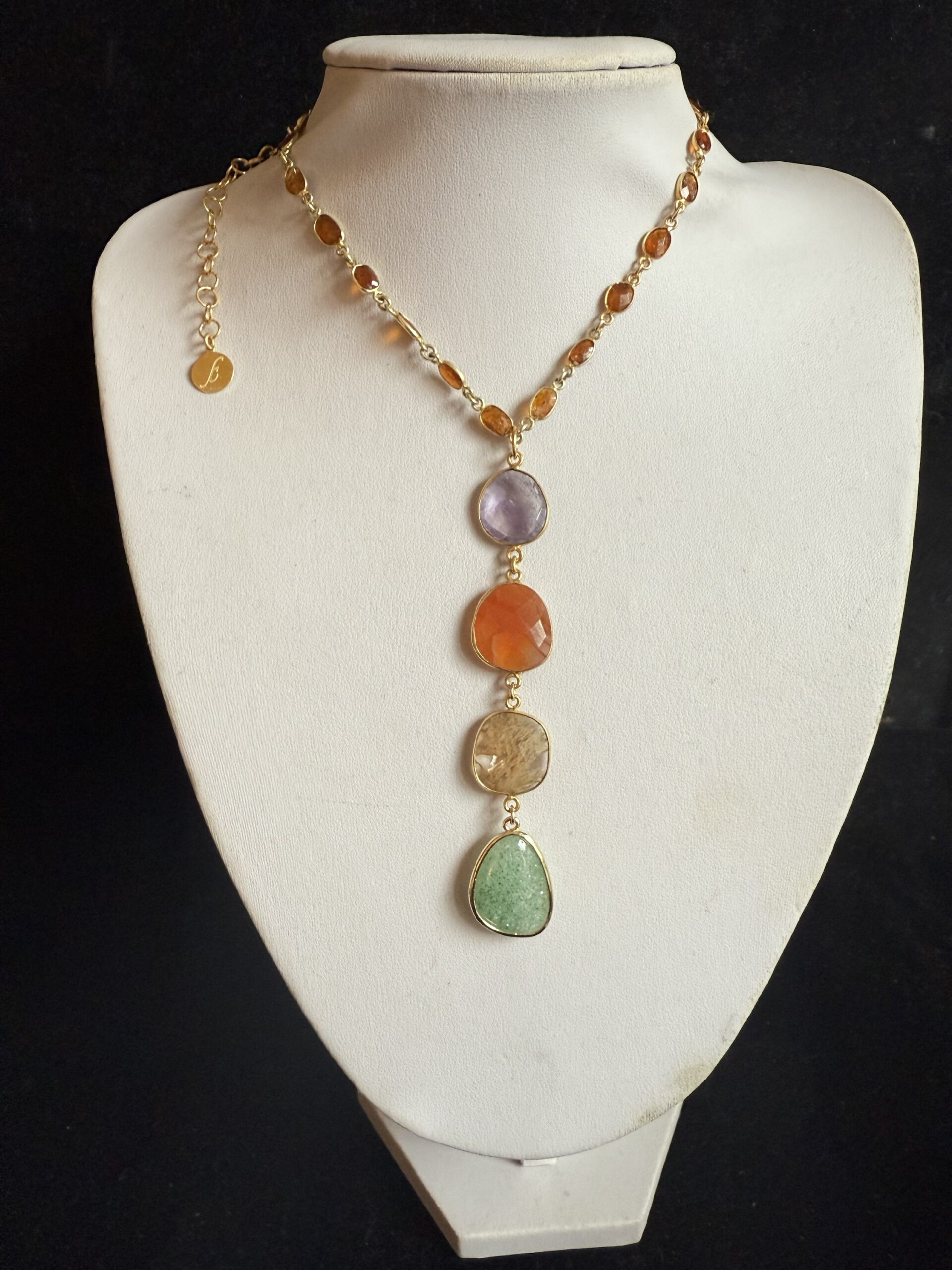 Pendente di pietre naturali: quarzo rutilato, ametista e corniola e