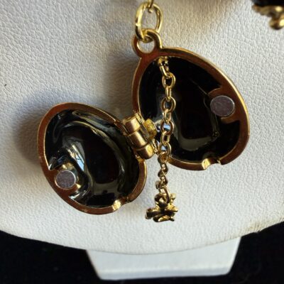 Pendente finale Ovetto simil Faberge’ lavorato a mano in ottone con cuore e zirconi, con angioletto dorato estraibile