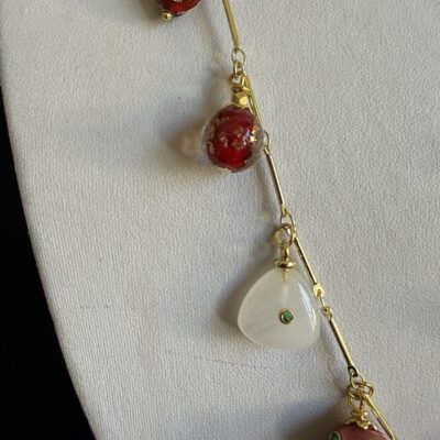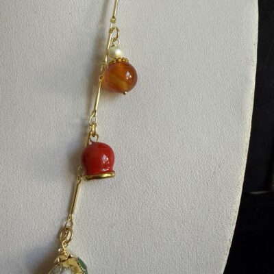 Pendenti charms in ottone dorato, smaltati e pietre naturali