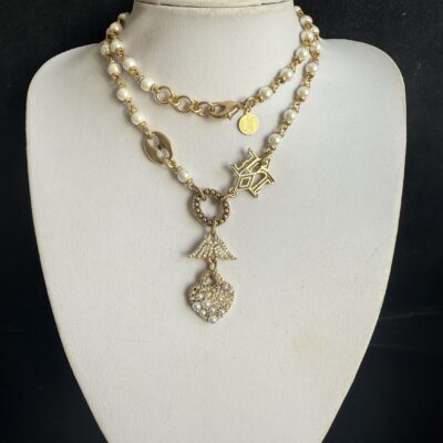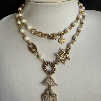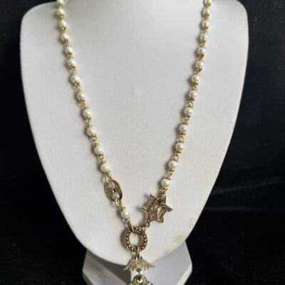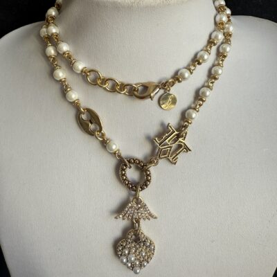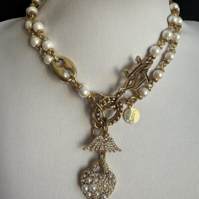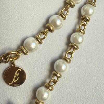 Collana lavorata a mano con perle di Maiorca e intervalli in ottone dorato