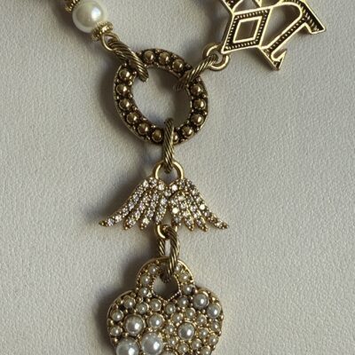 Scritta LOVE in bronzo dorato , connettore cerchio con perline, connettore ali con zirconi
