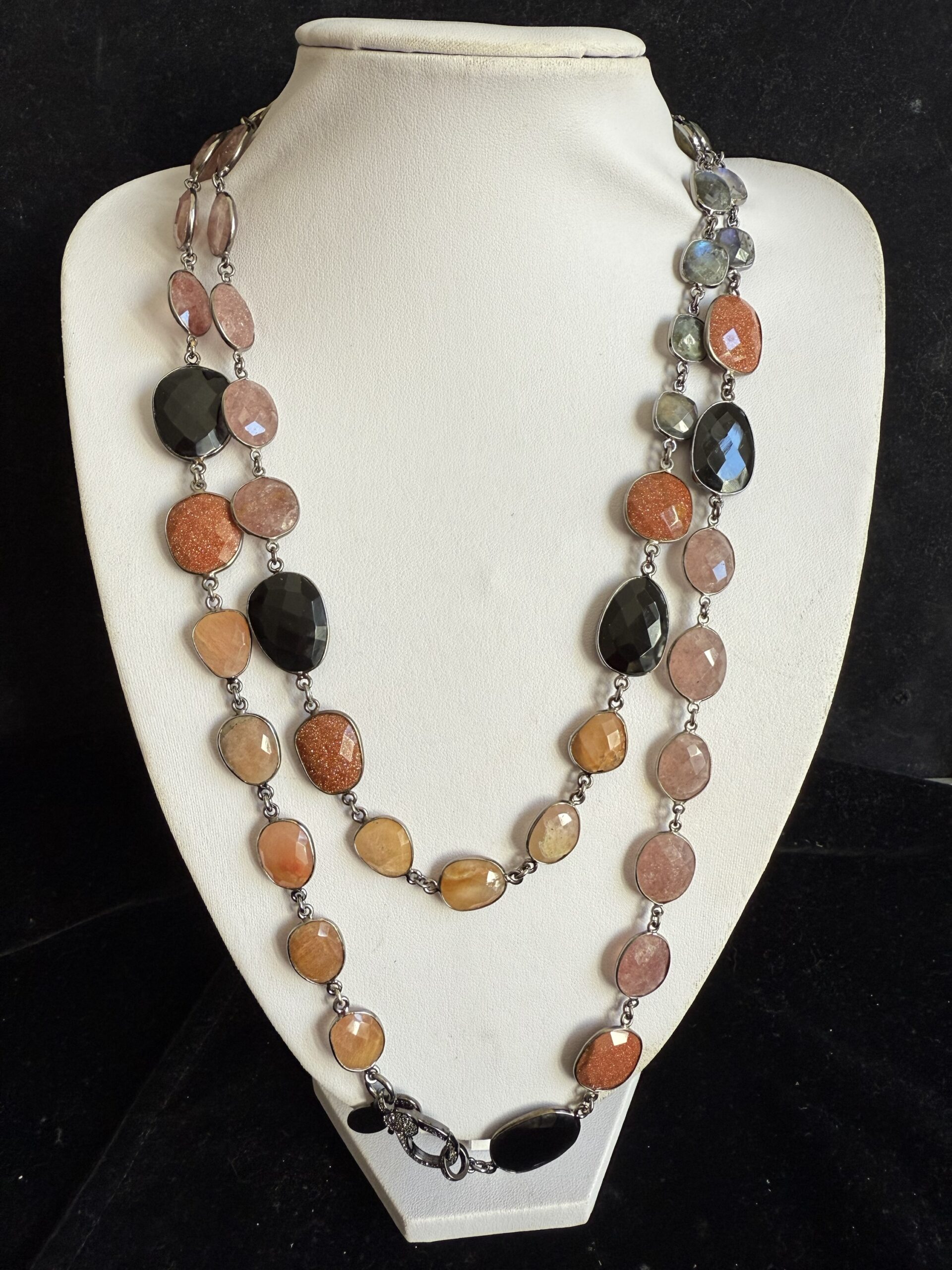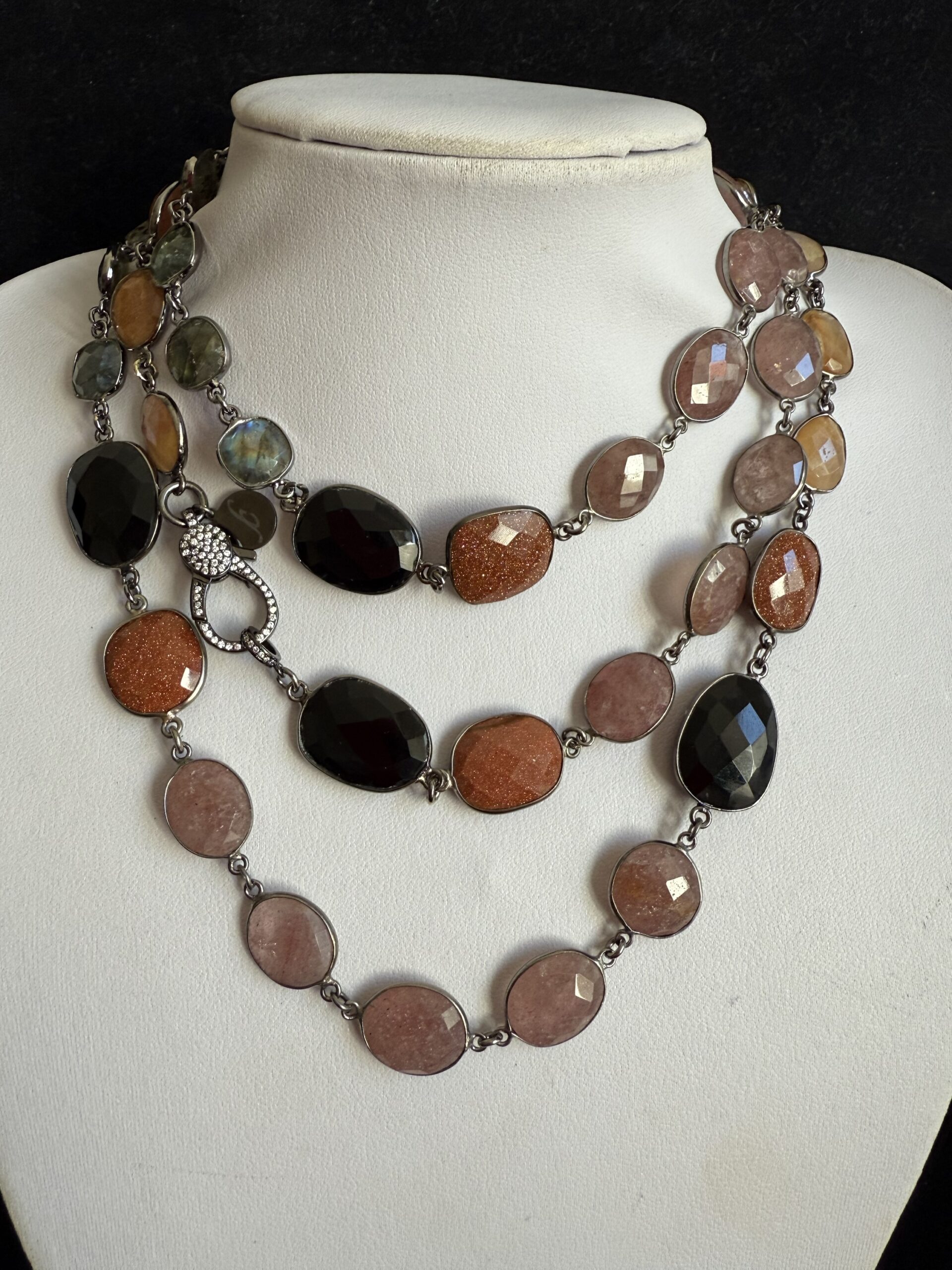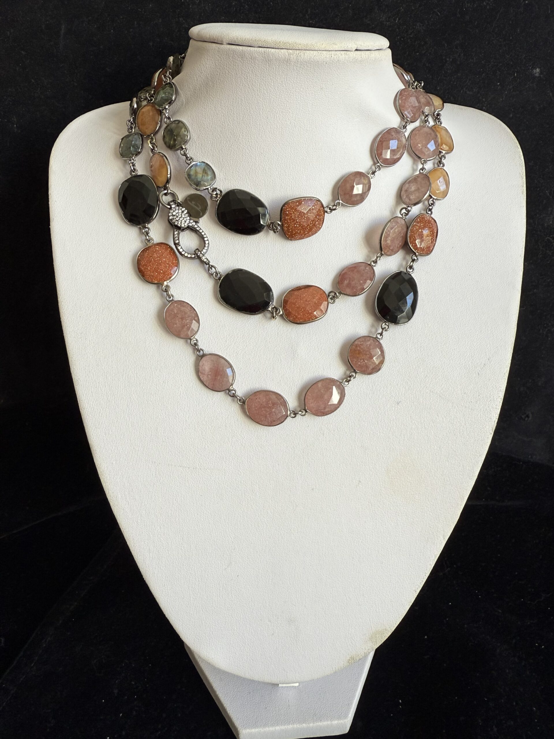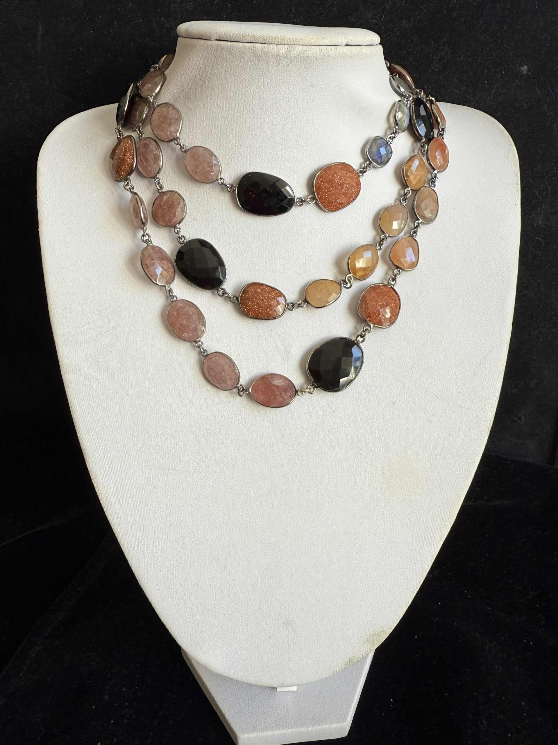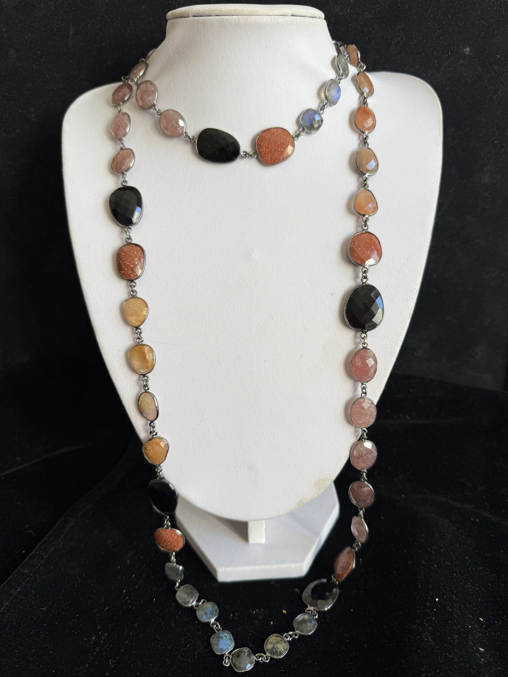 Pietre naturali di labradorite, quarzo rutilato, quarzo cherry, onice nera, pietra del sole