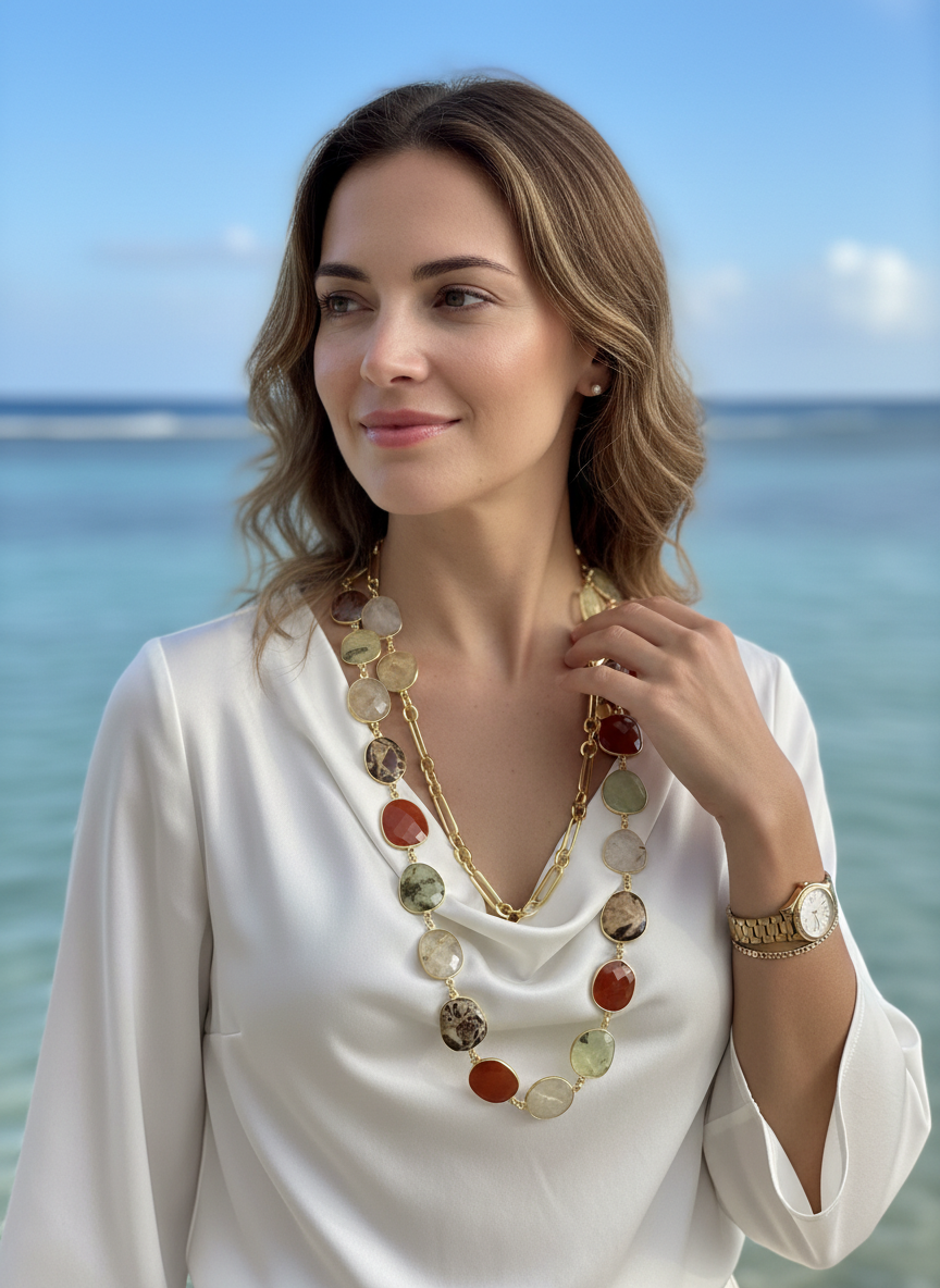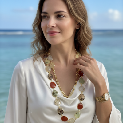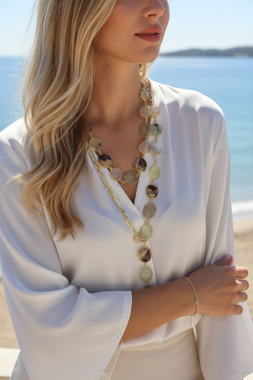Collana lunga lavorata a mano con cm 40 di catena placcata oro 18 kt