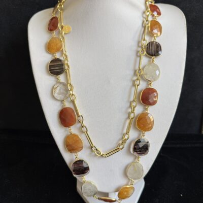 Collana lunga lavorata a mano con cm 40 di catena placcata oro 18 kt