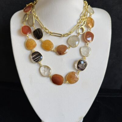 Pietre naturali big di corniola chiaro e corniola scuro, quarzo rutilato e quarzo rigato