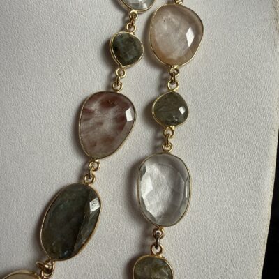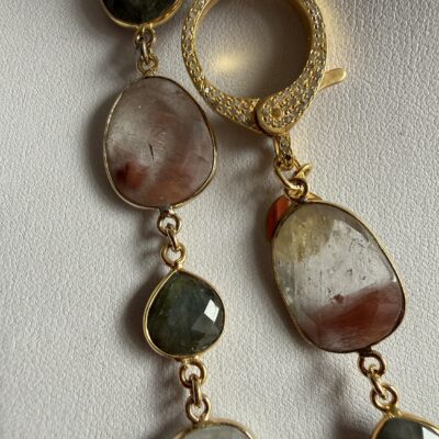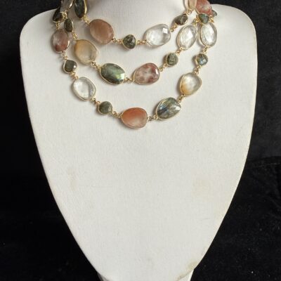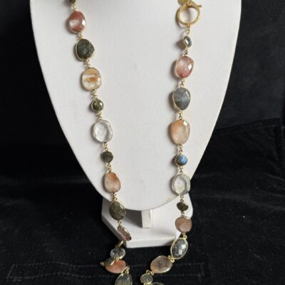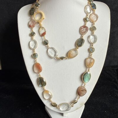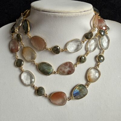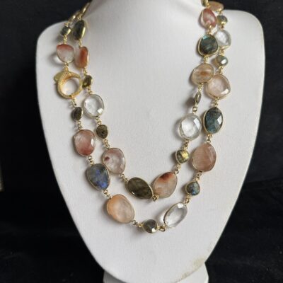 Pietre naturali irregolari di labradorite, quarzo rutilato e cristallo di rocca