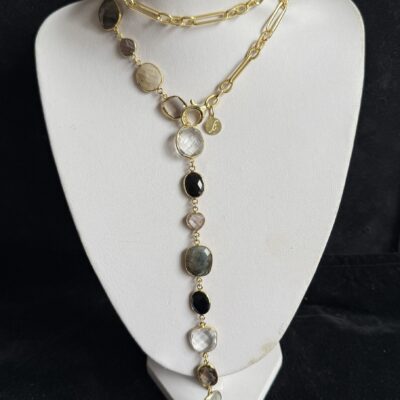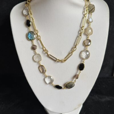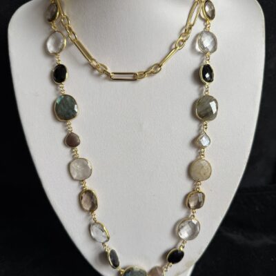 Collana lavorata a mano composta da catena a maglie placcata 18 kt e pietre naturali incorniciate goldplated