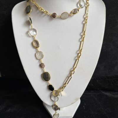 Collana lavorata a mano composta da catena a maglie placcata 18 kt e pietre naturali incorniciate goldplated
