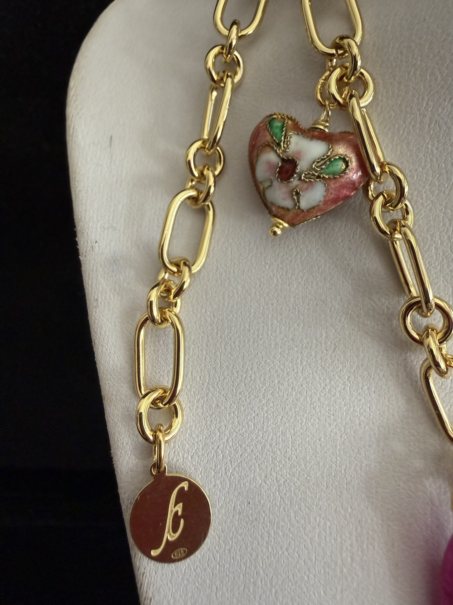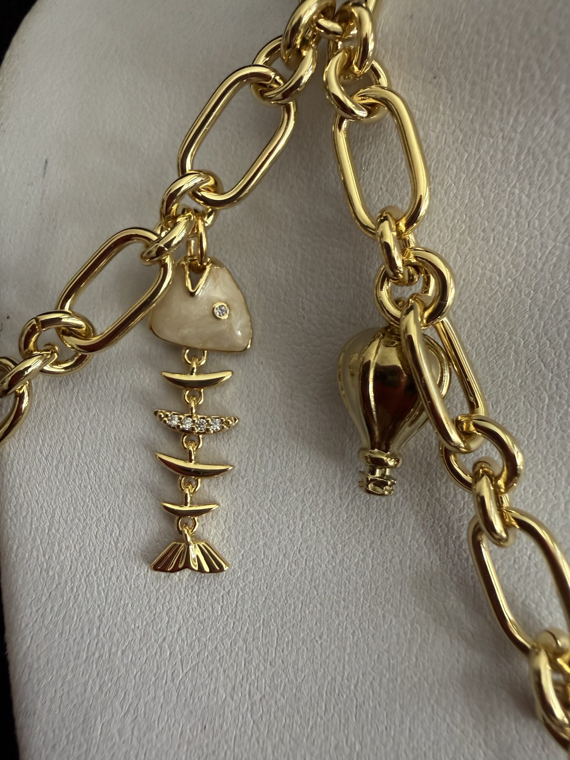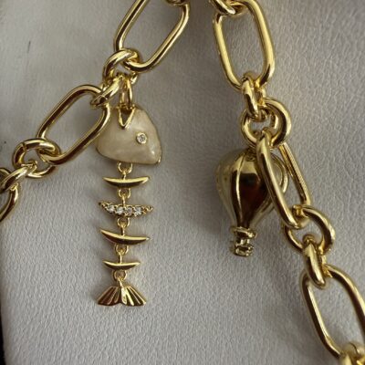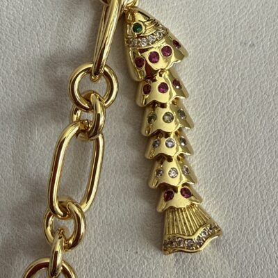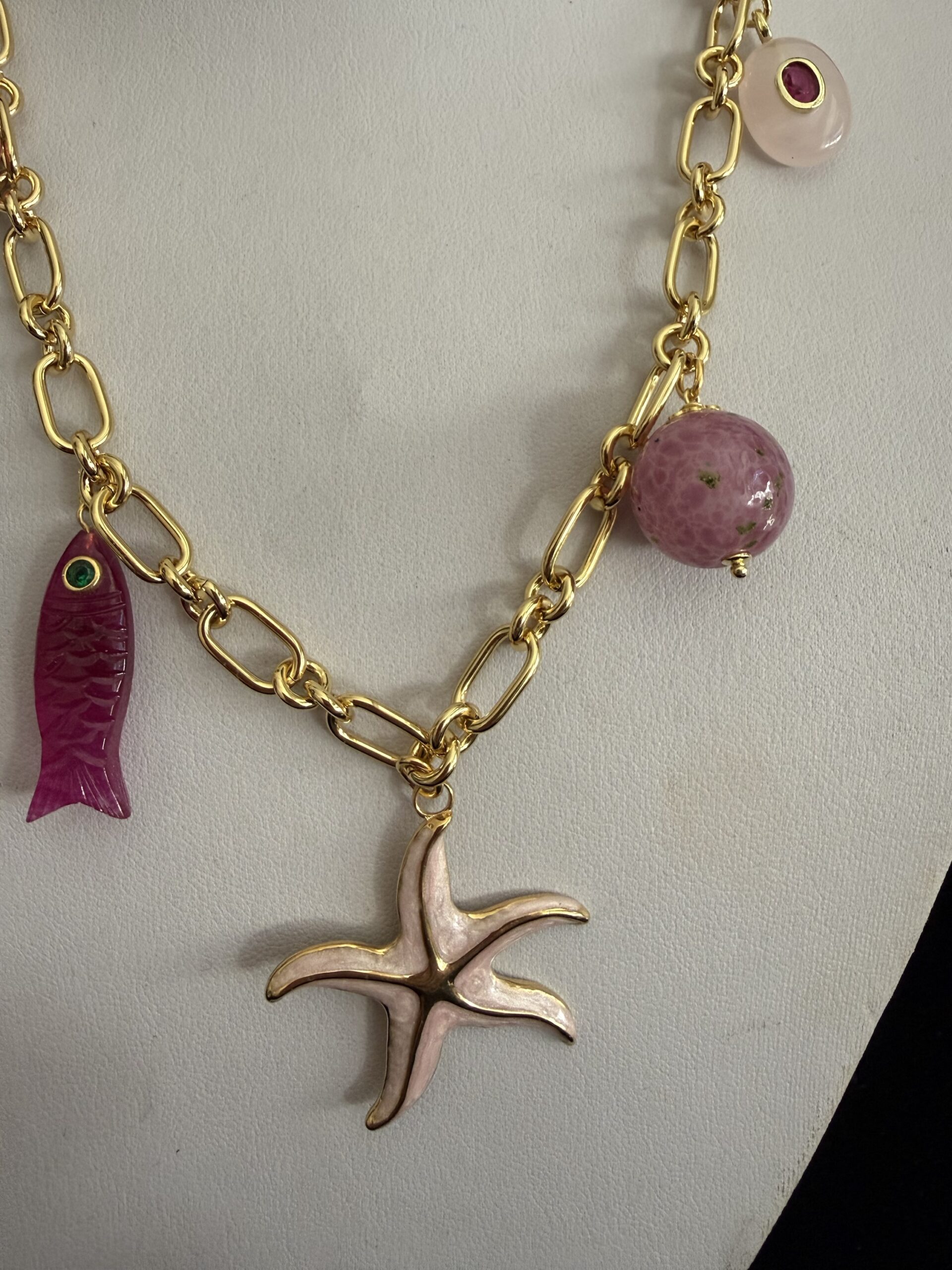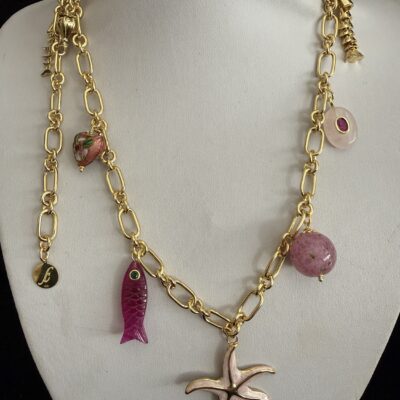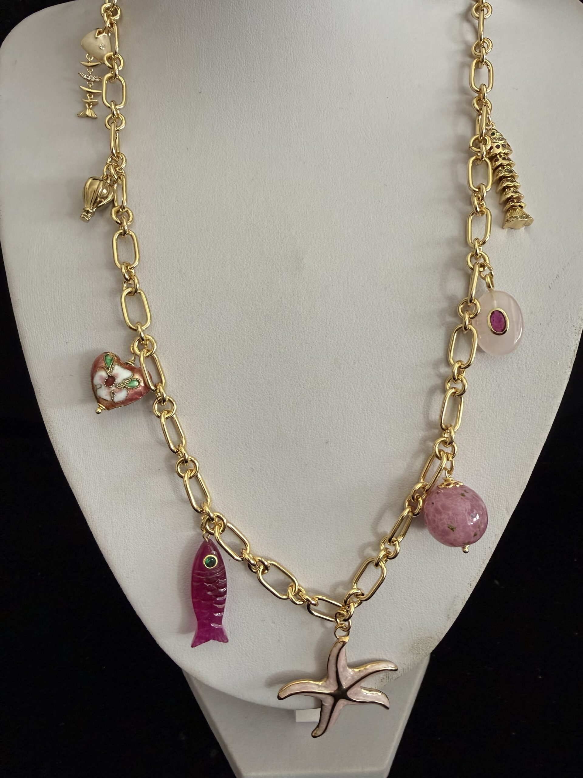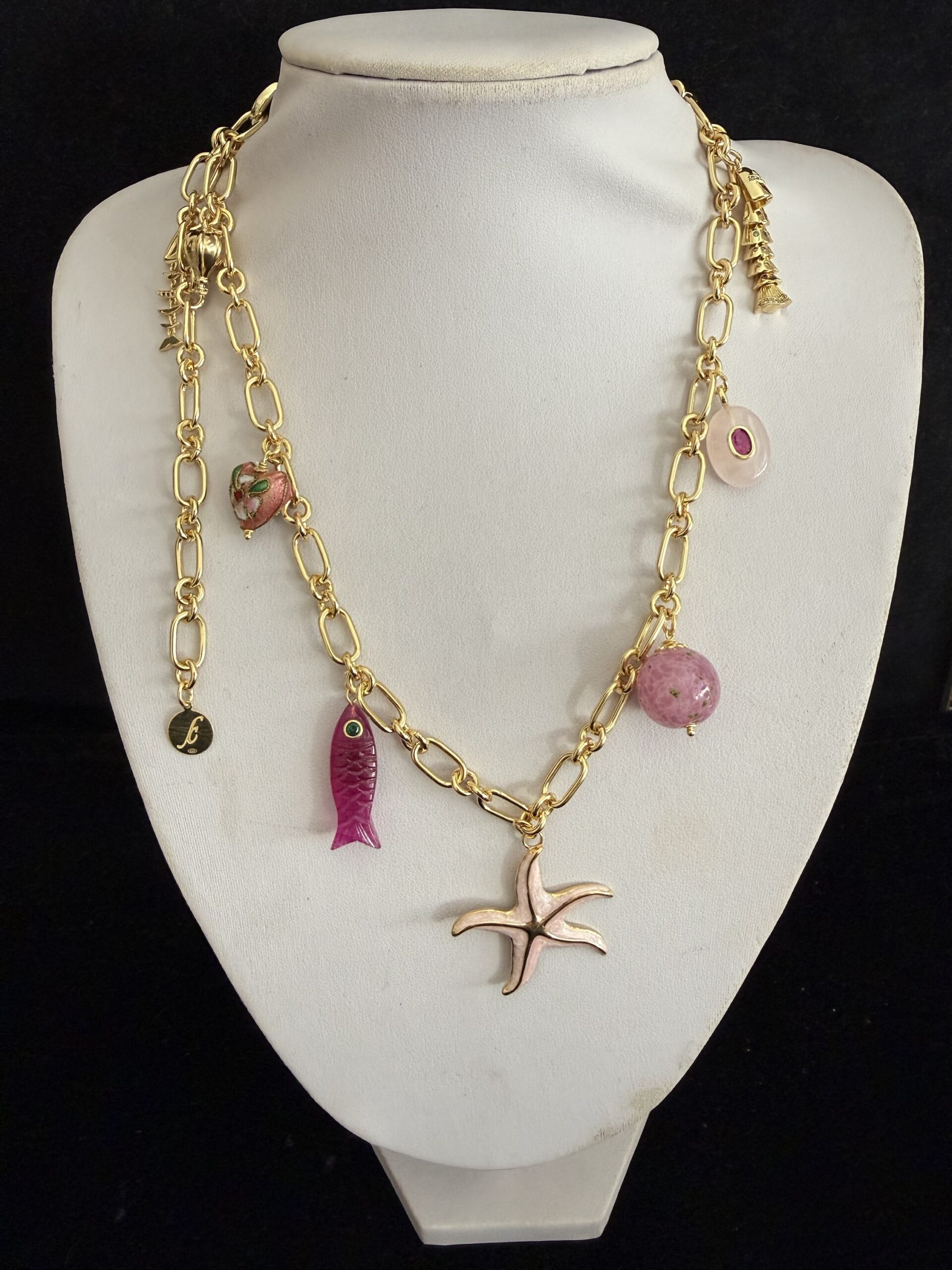 8 Pendenti fra cui pesci e charms dorati smaltati e lavorati a mano: