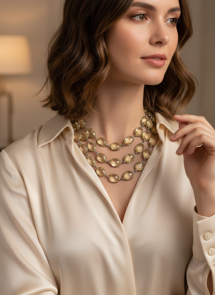 - Collana con quarzi naturali Lemon in argento brunito