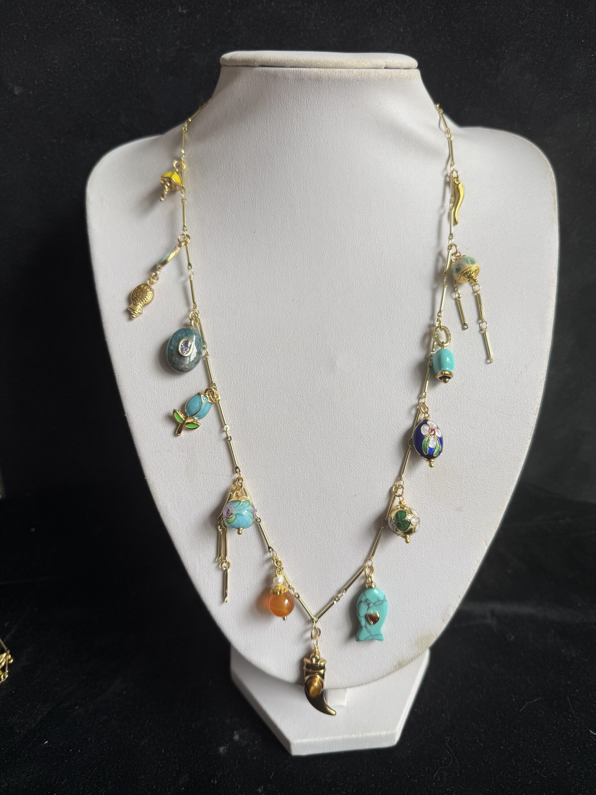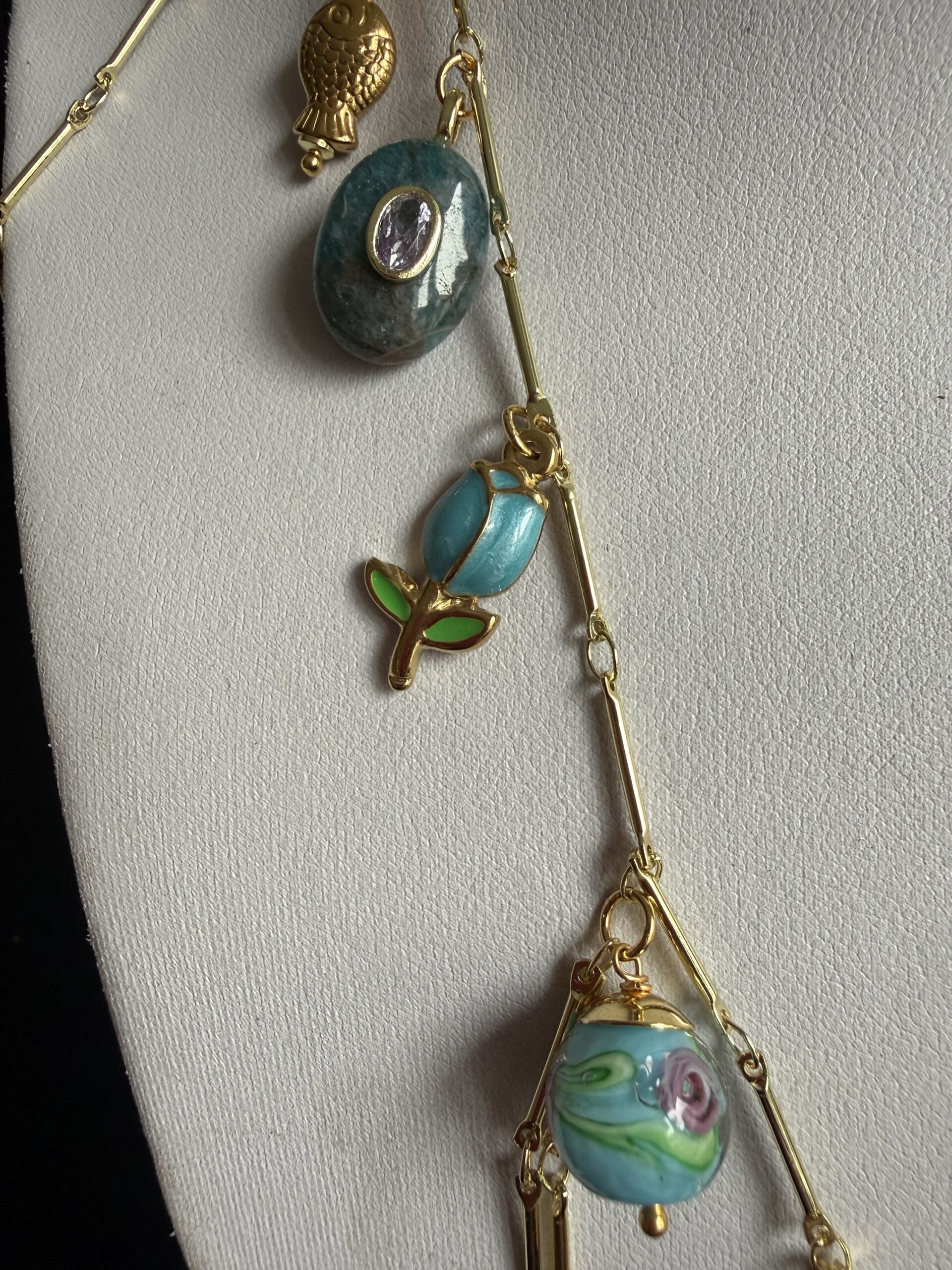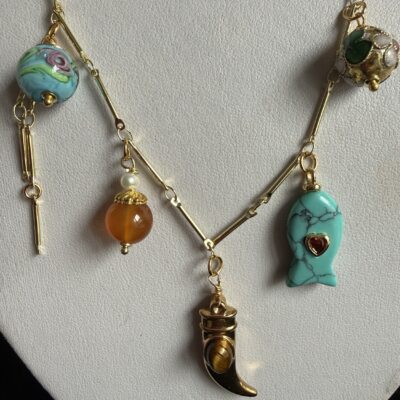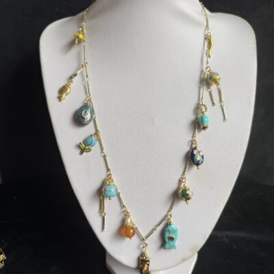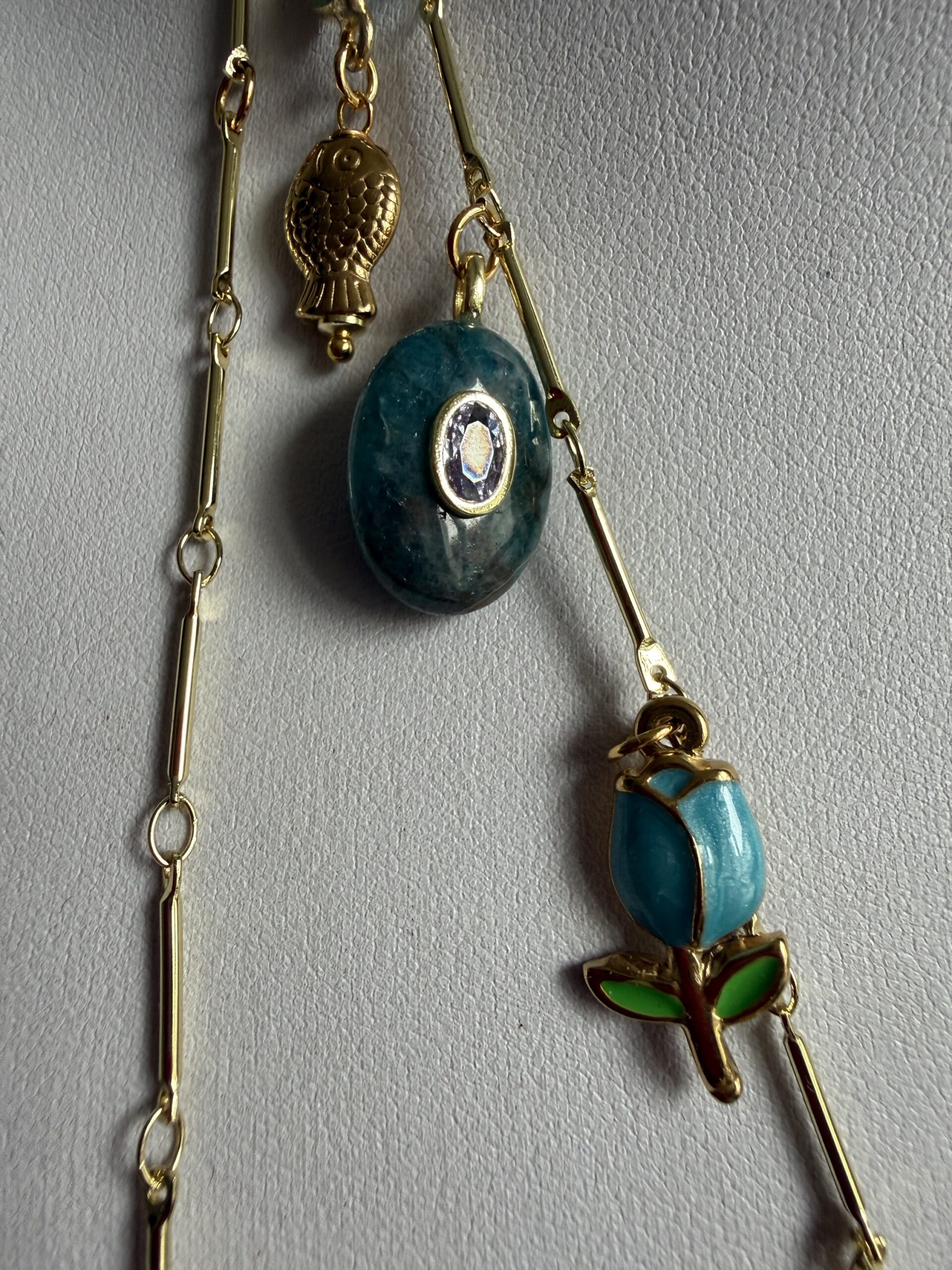 Pesce di pietra naturale turchese con zircone, pesciolino con pietra di larimar, confetto cianite con zircone