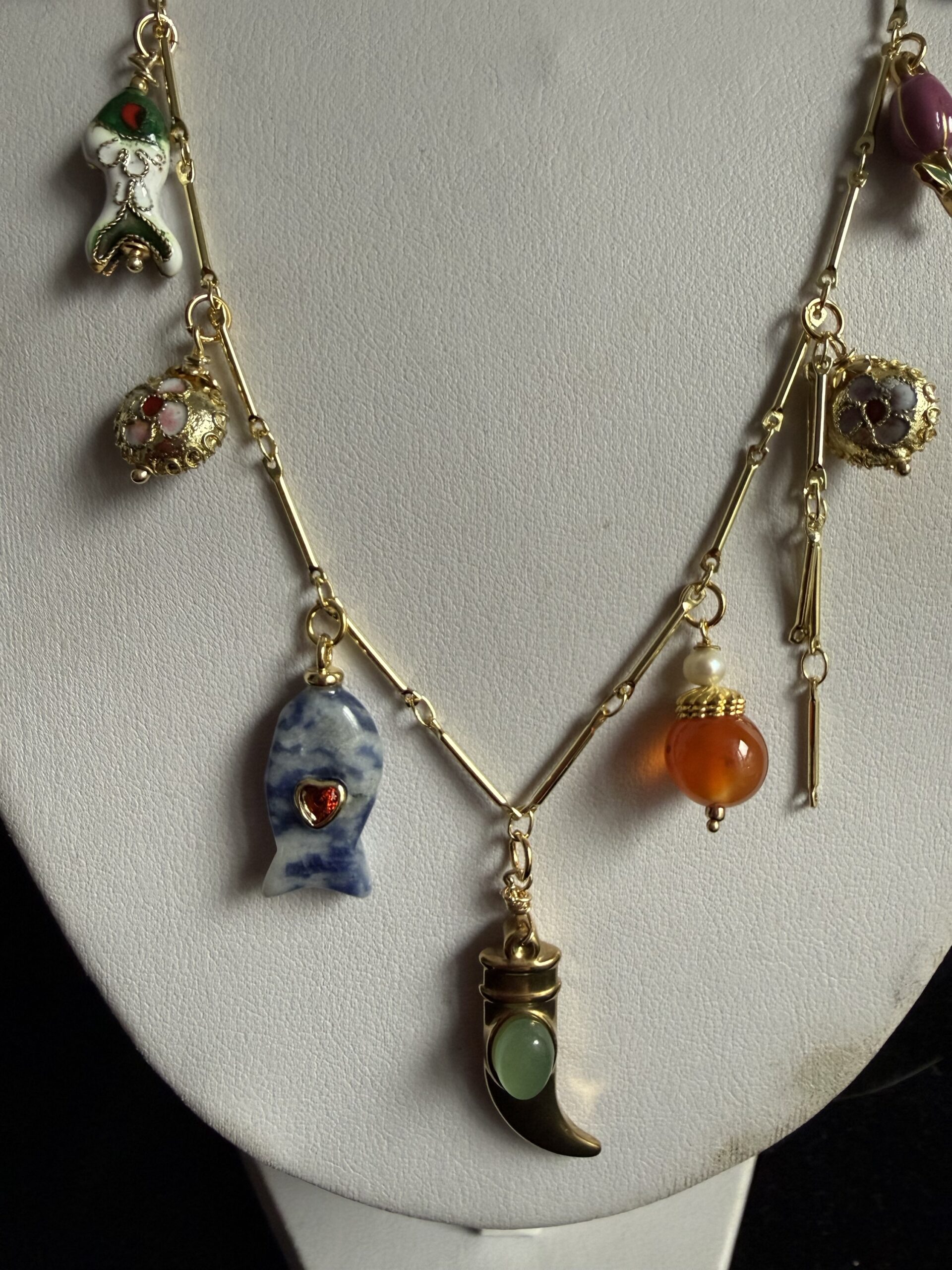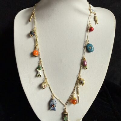 Pendenti smaltati ed elementi in argento 925 dorato