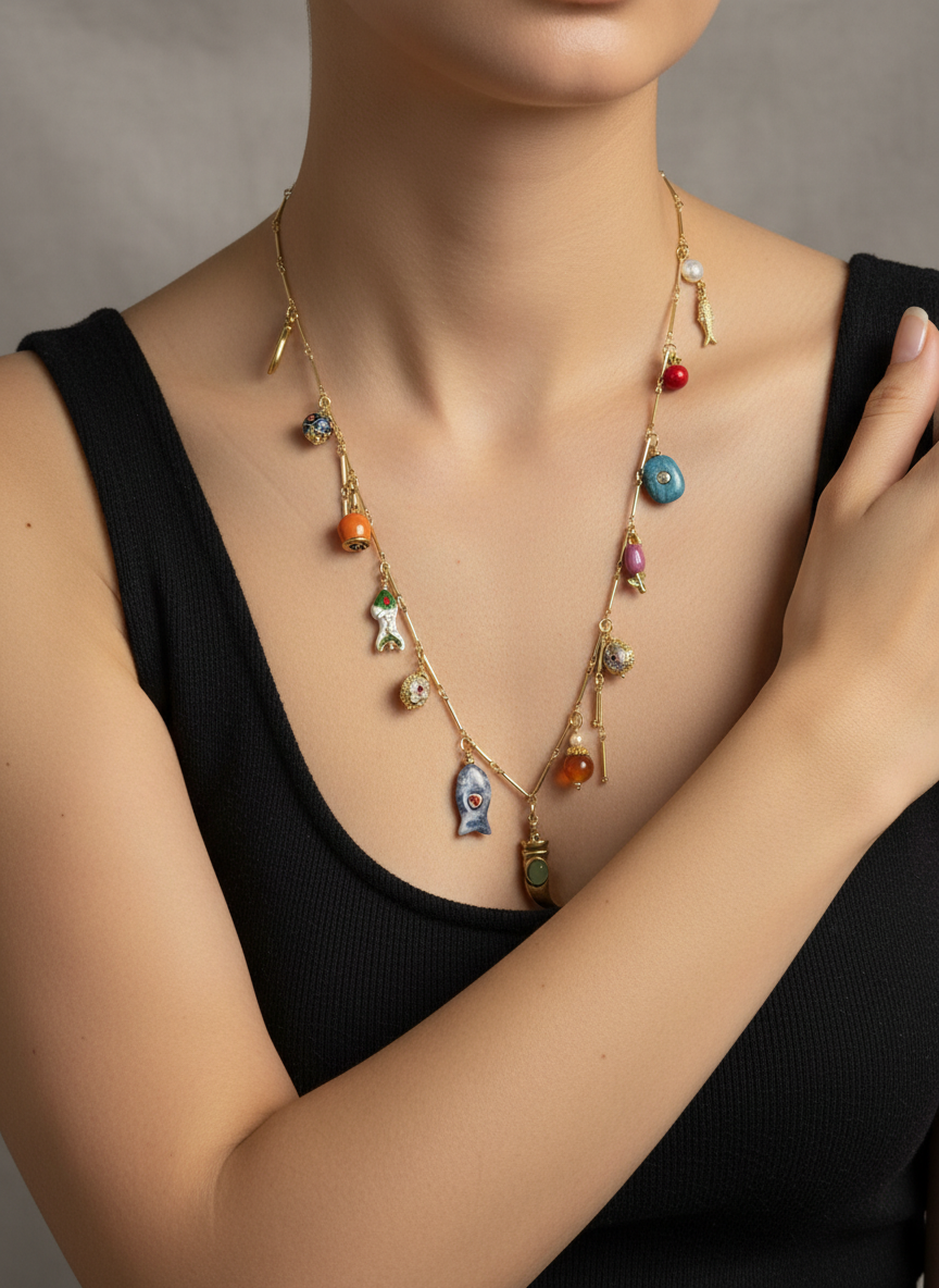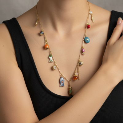 Collana lavorata a mano con catena placcata oro 18 kt