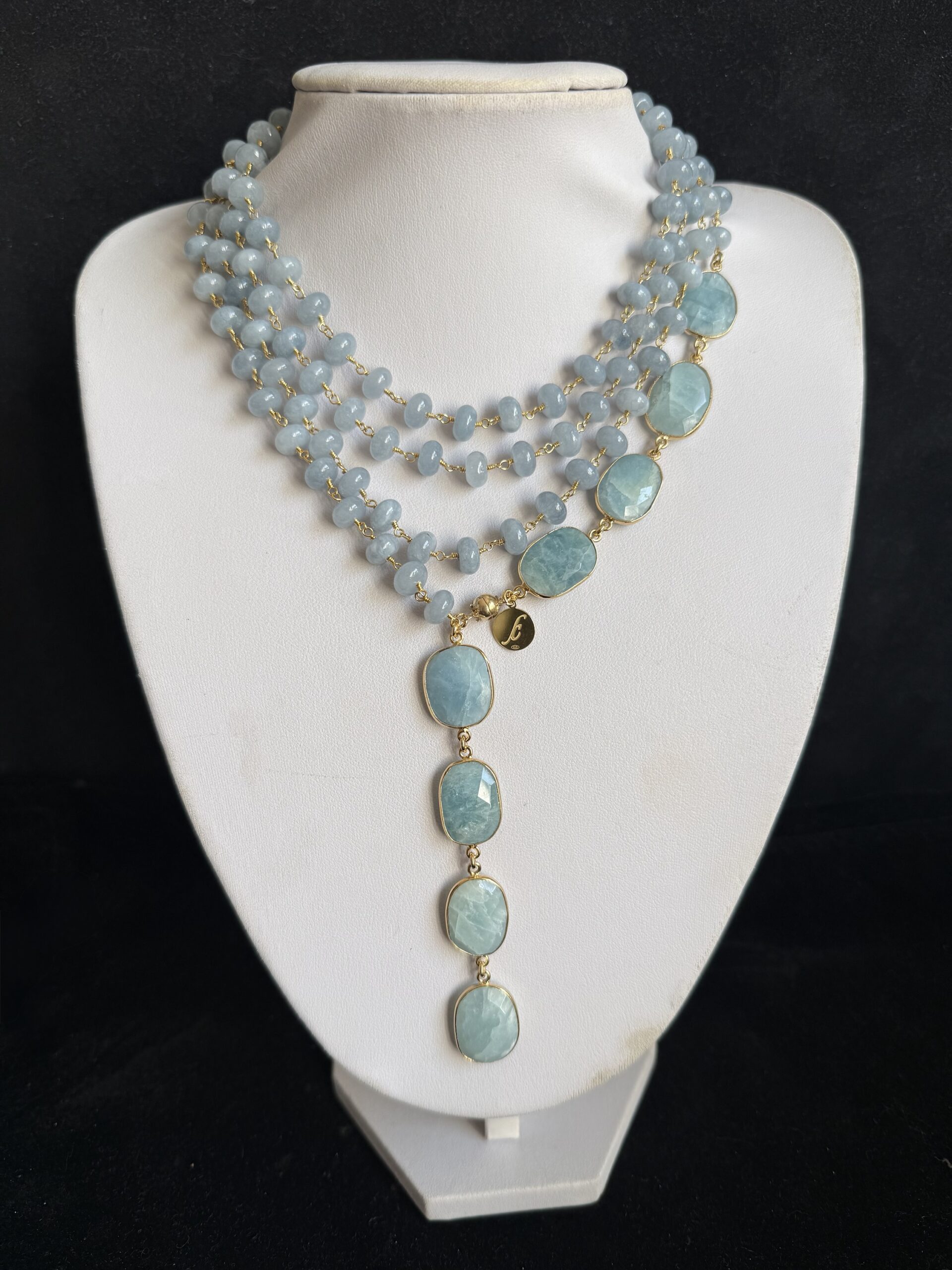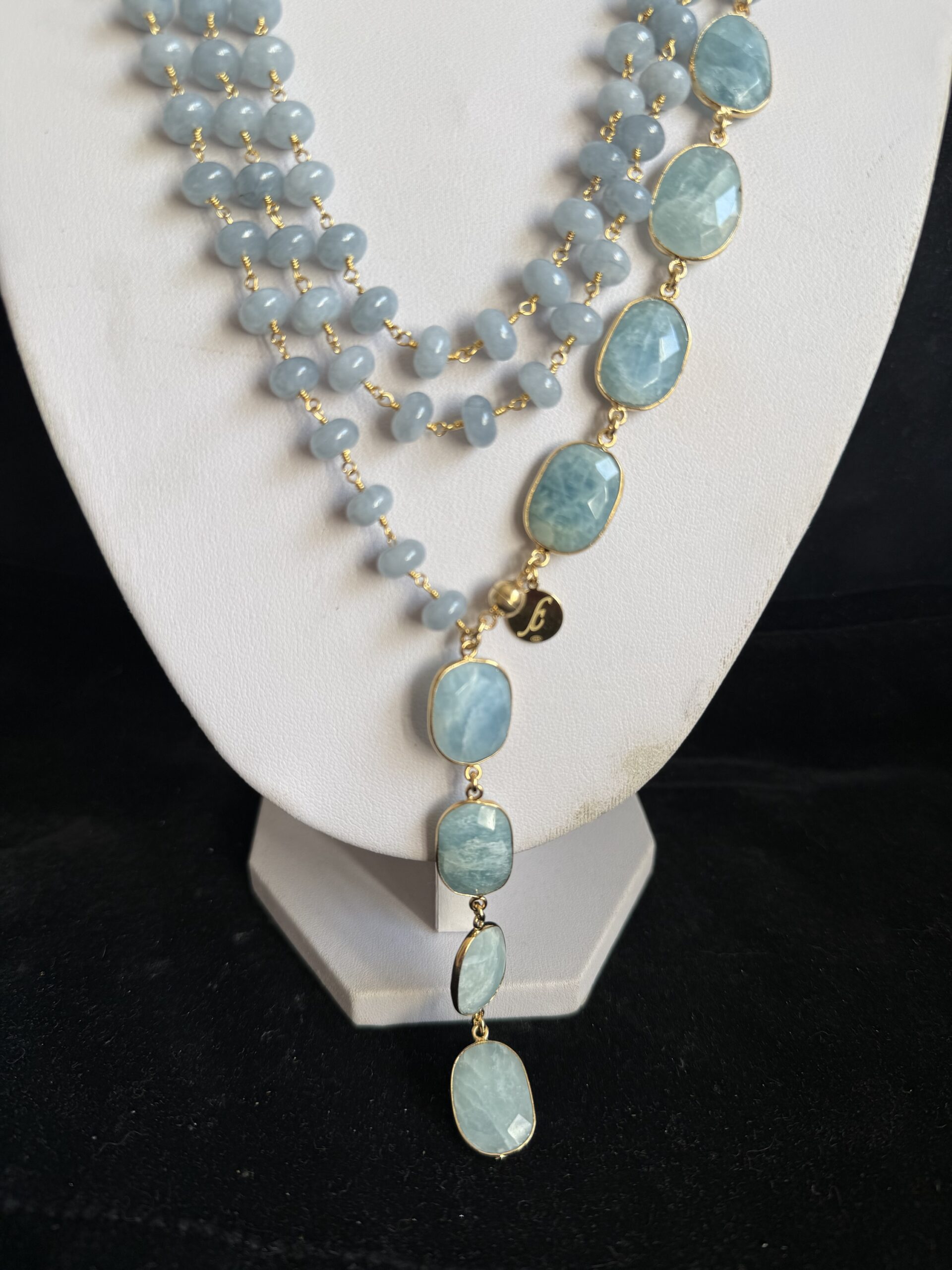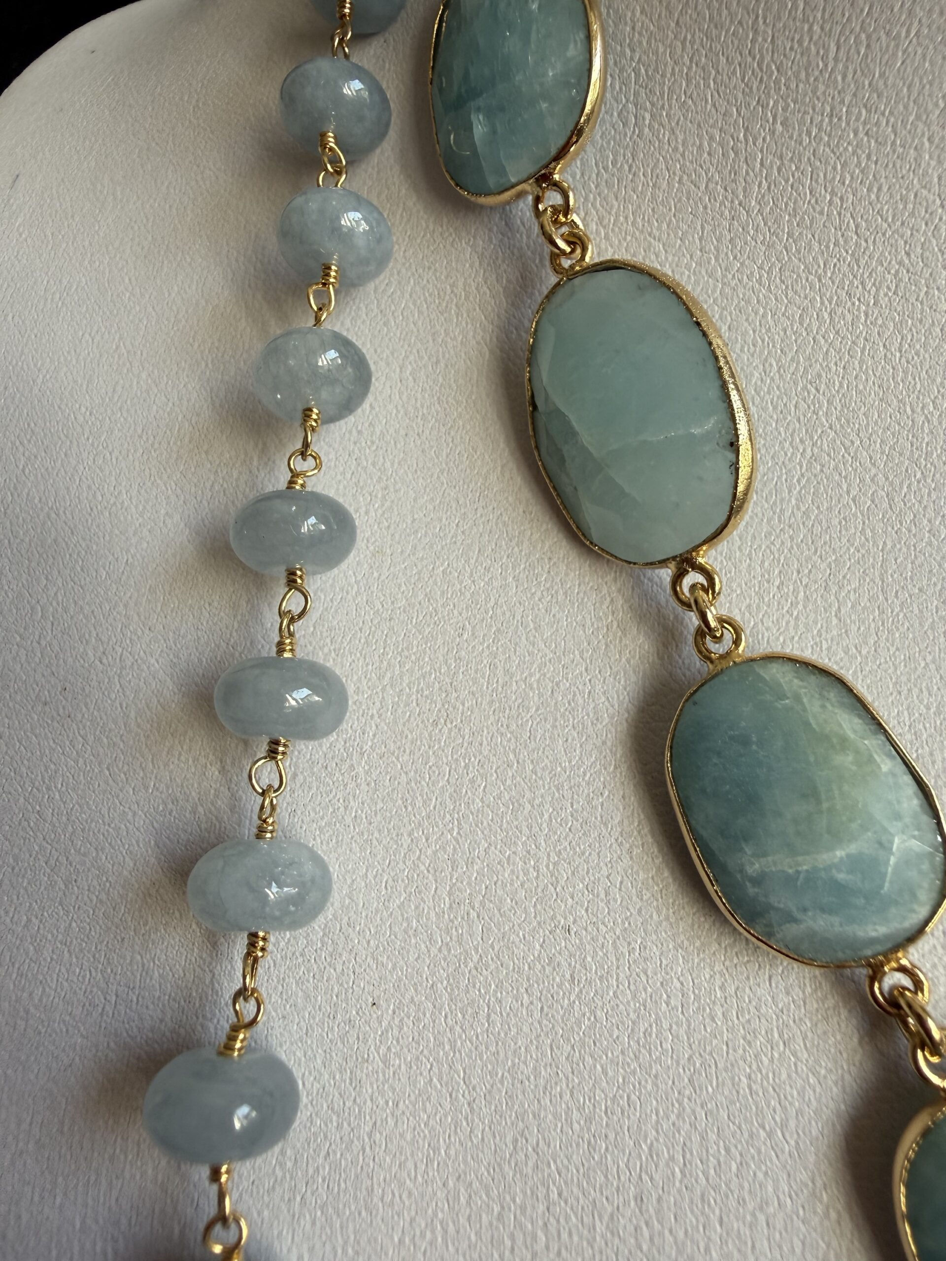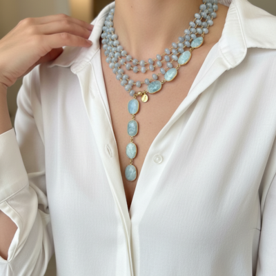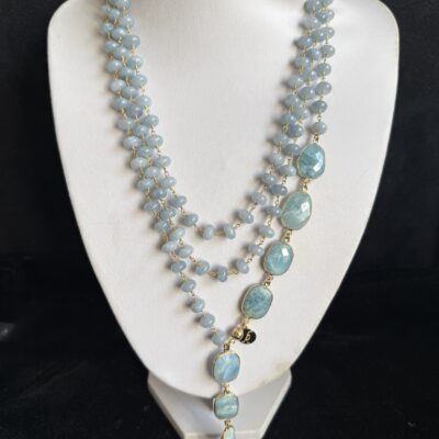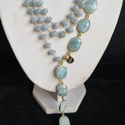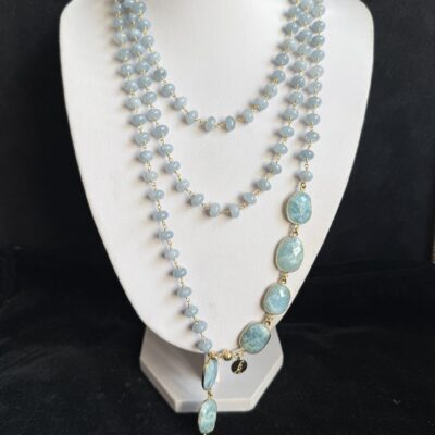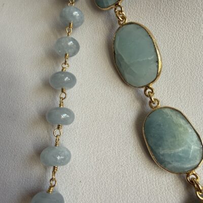Pietre naturali a rondelle di angelite mm 08 con finali di acquamarina