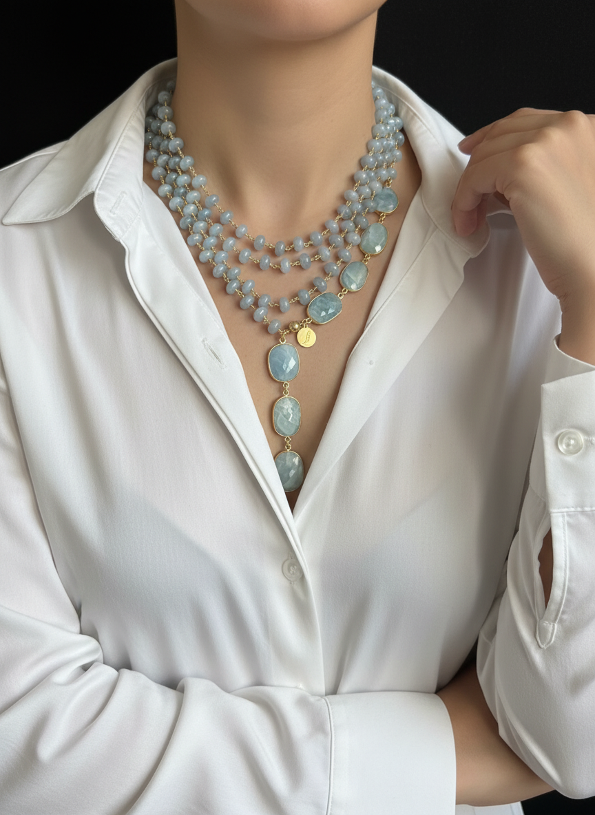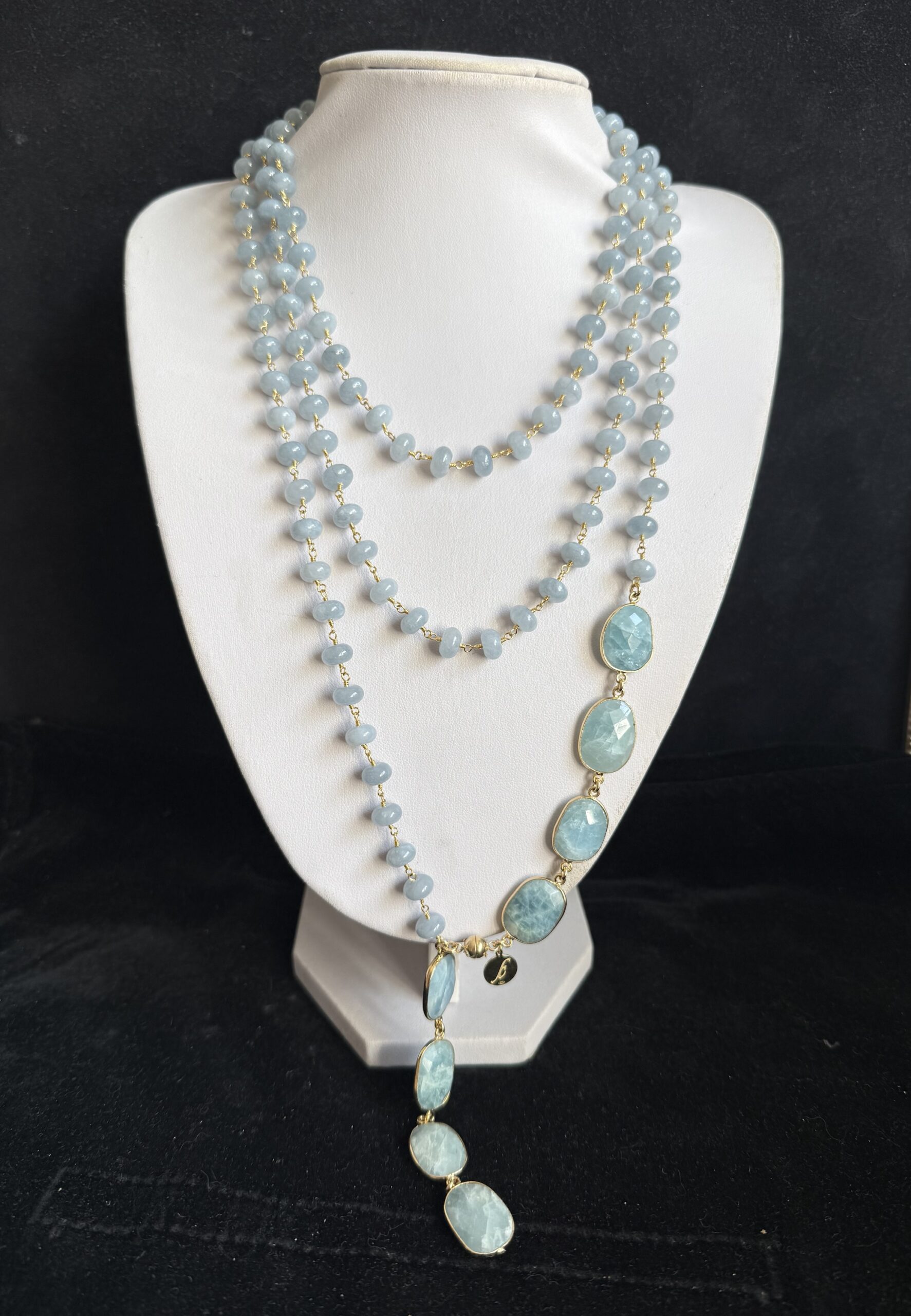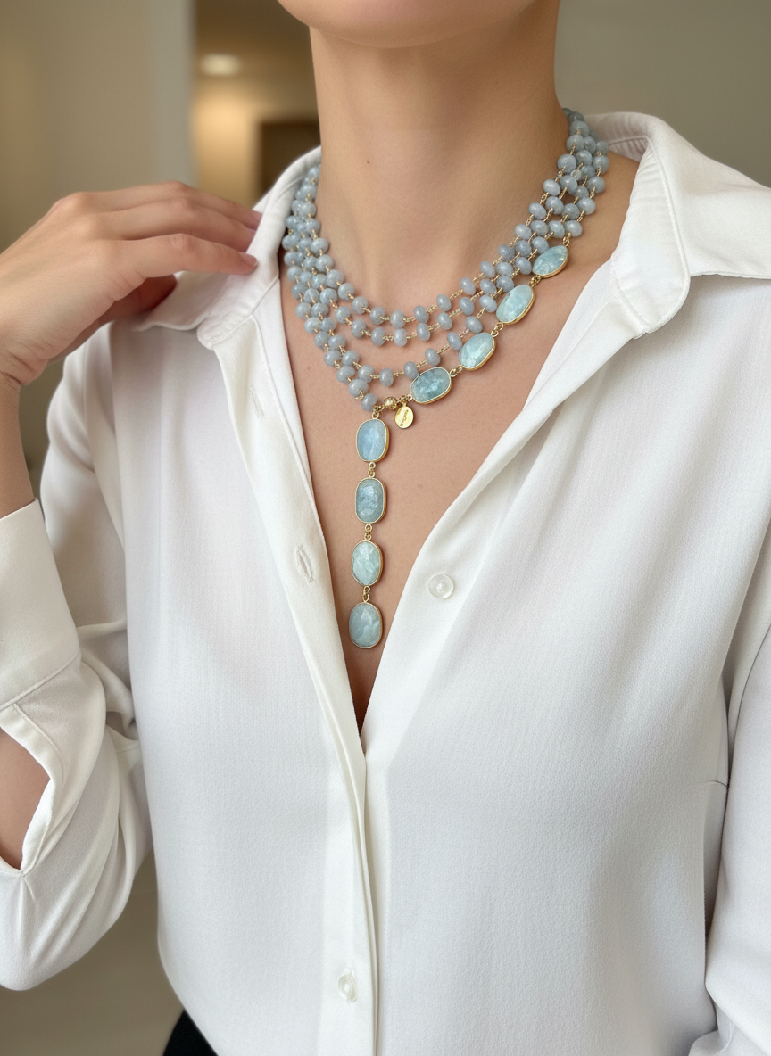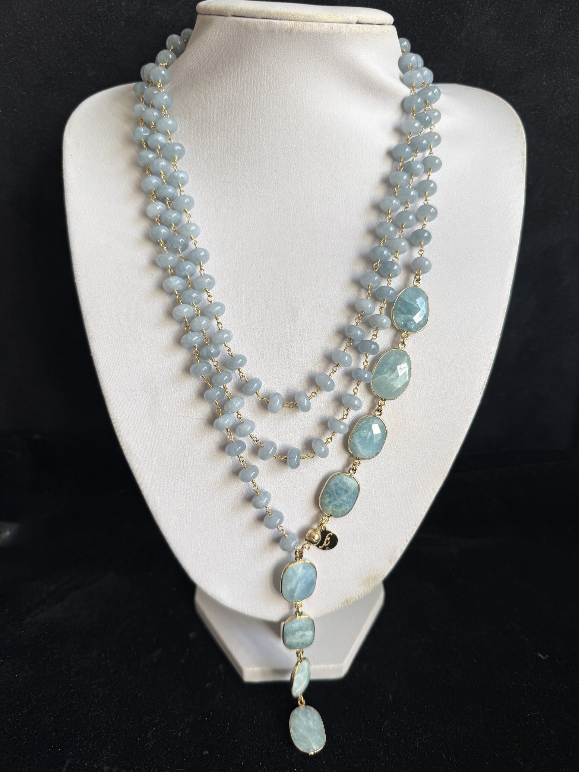 Pietre naturali a rondelle di angelite mm 08 con finali di acquamarina