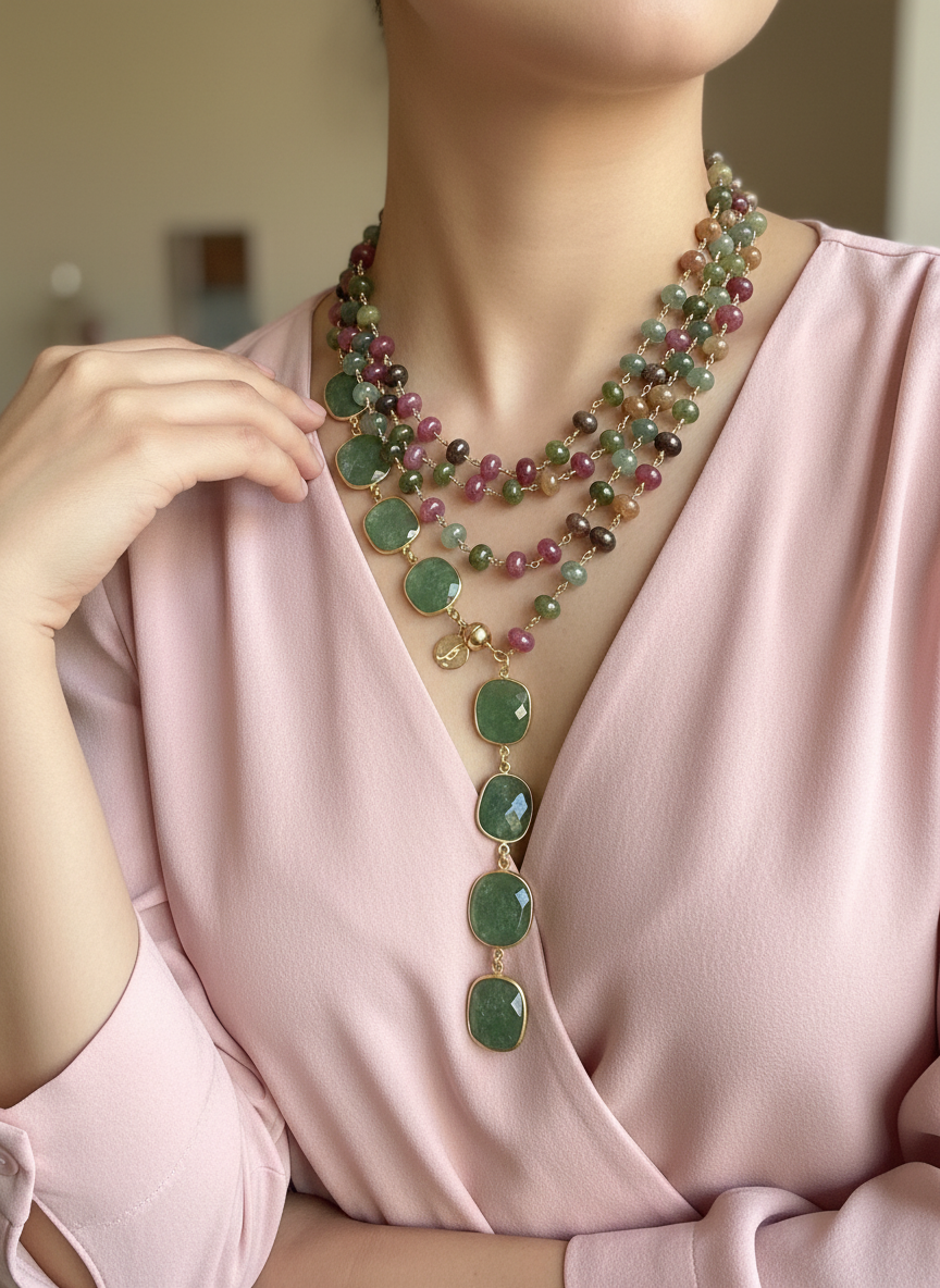 Pietre naturali a rondelle mm 08 di giada multicolor con finali di pietra irregolare di quarzo cherry verde